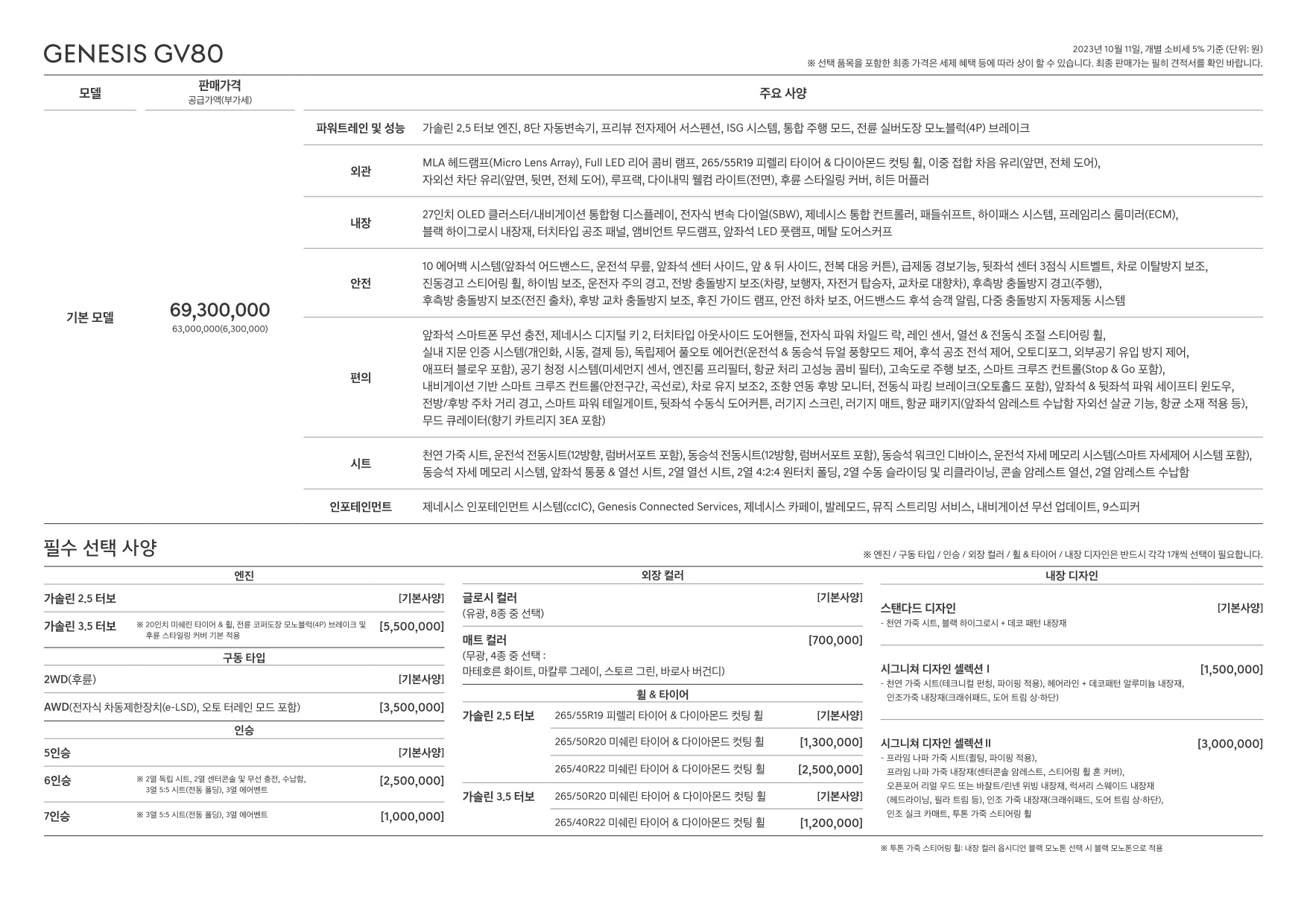 2023년 10월 GV80 신차가격표 (2024년형 GV80 출시)