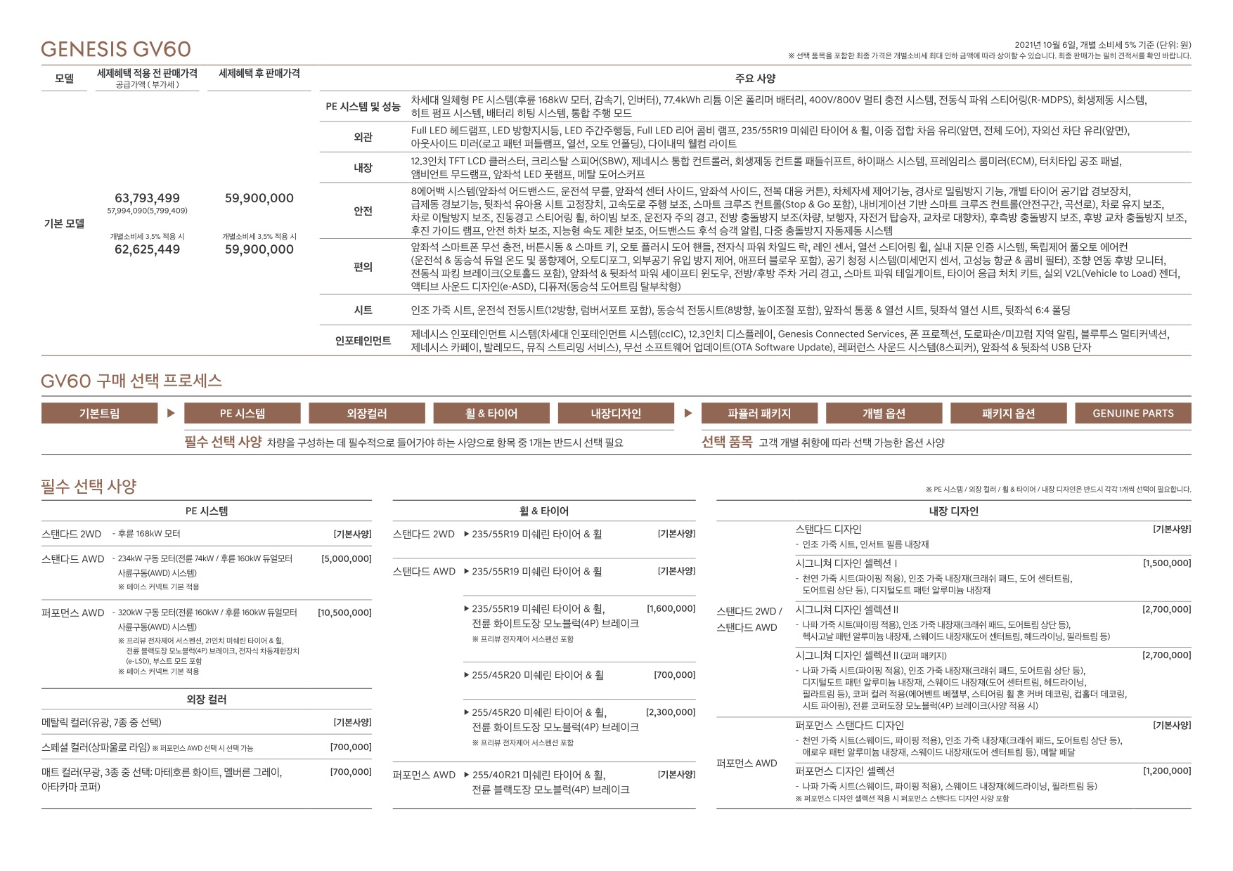 2021년 10월 제네시스 GV60 신차가격표 (GV60 출시)