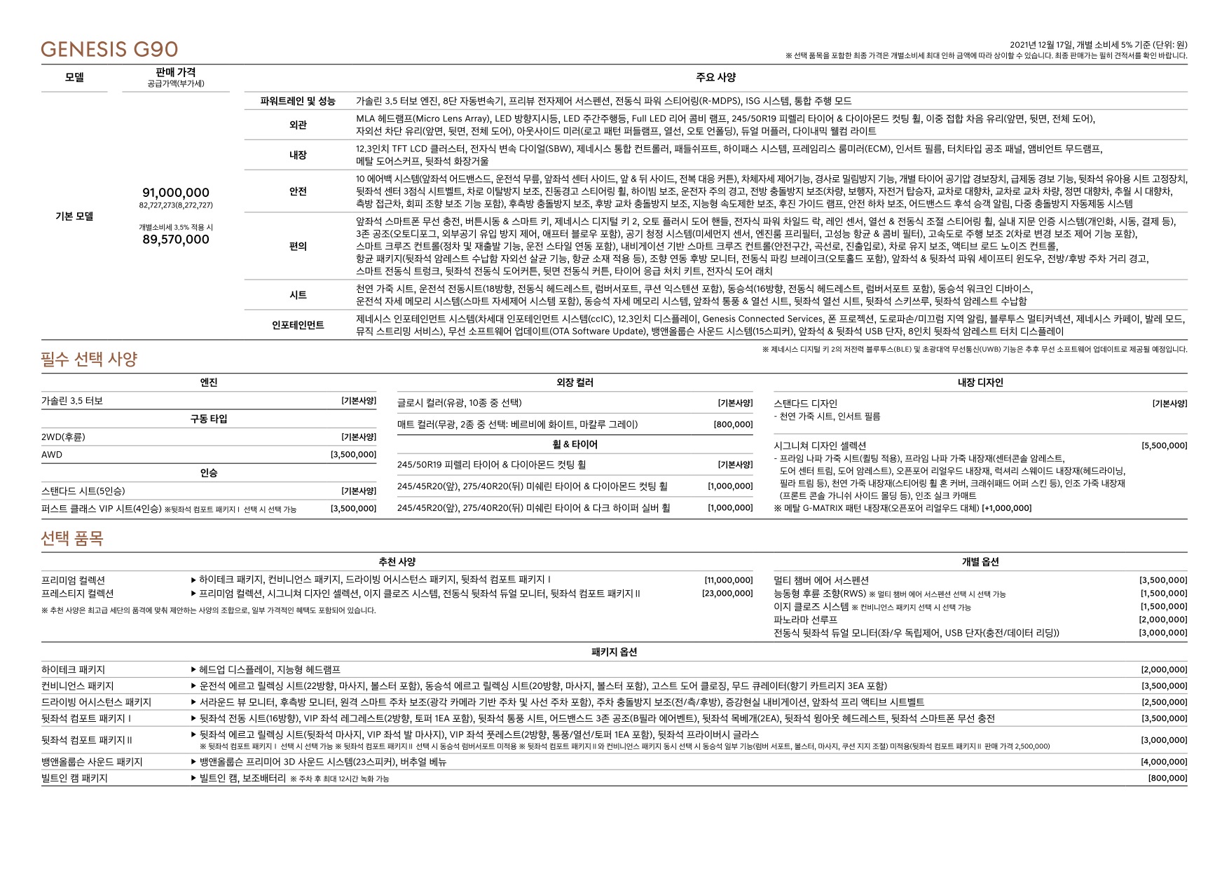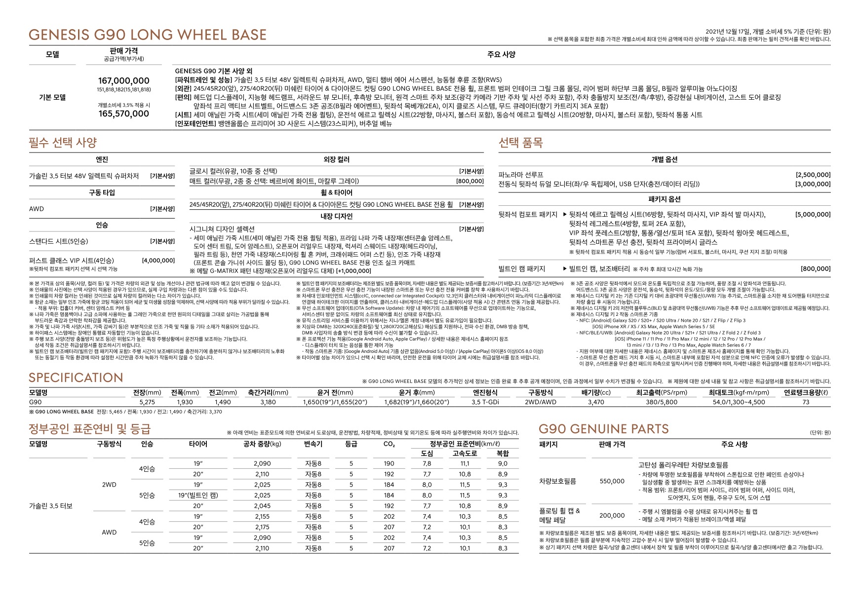 2021년 12월 제네시스G90 신차가격표 (신형 제네시스G90 RS4 공개)