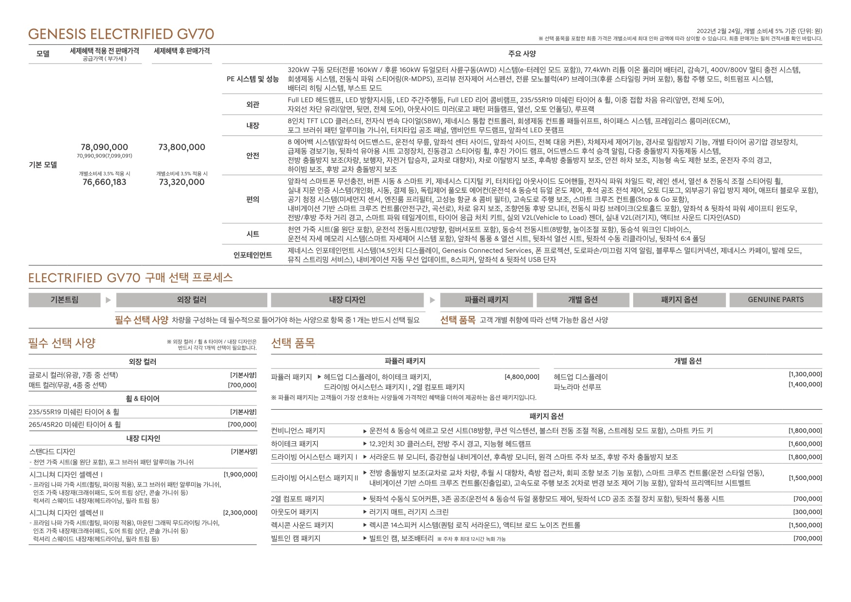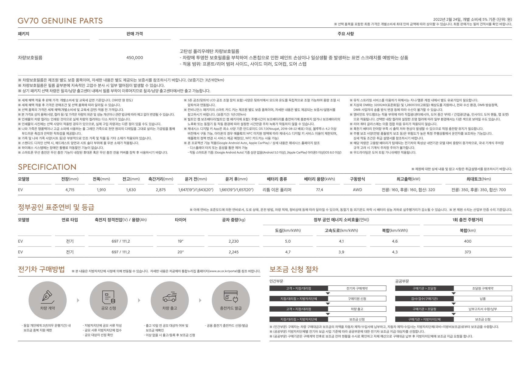 2022년 2월 GV70 전기차 (일렉트릭파이드 GV70) 가격표