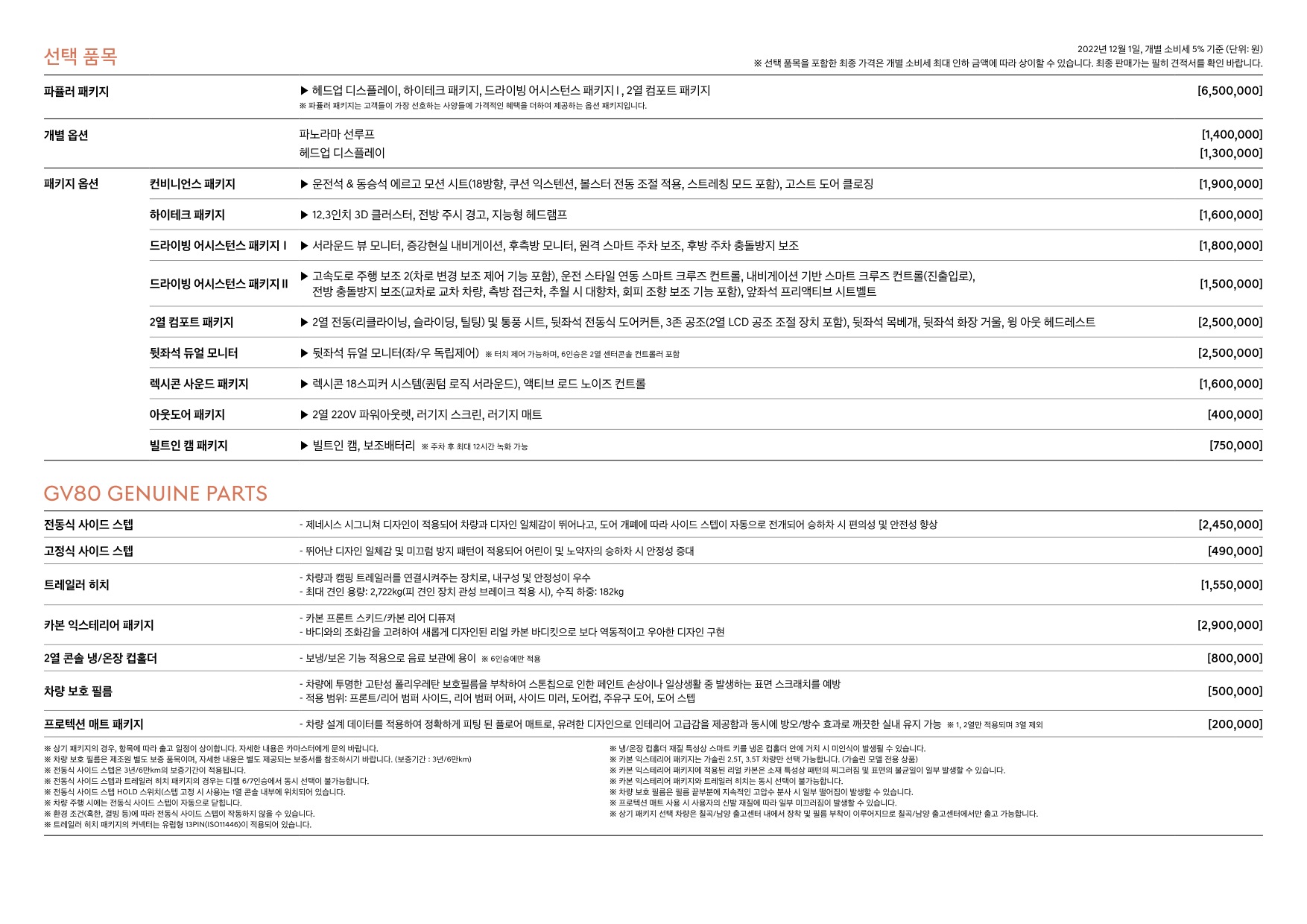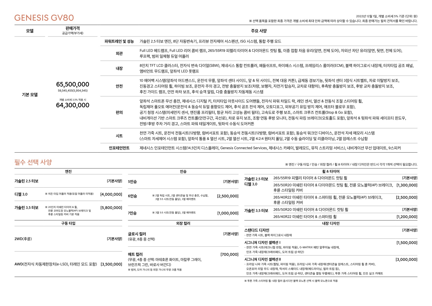 2022년 12월 GV80 신차가격표 (2023년형 GV80)