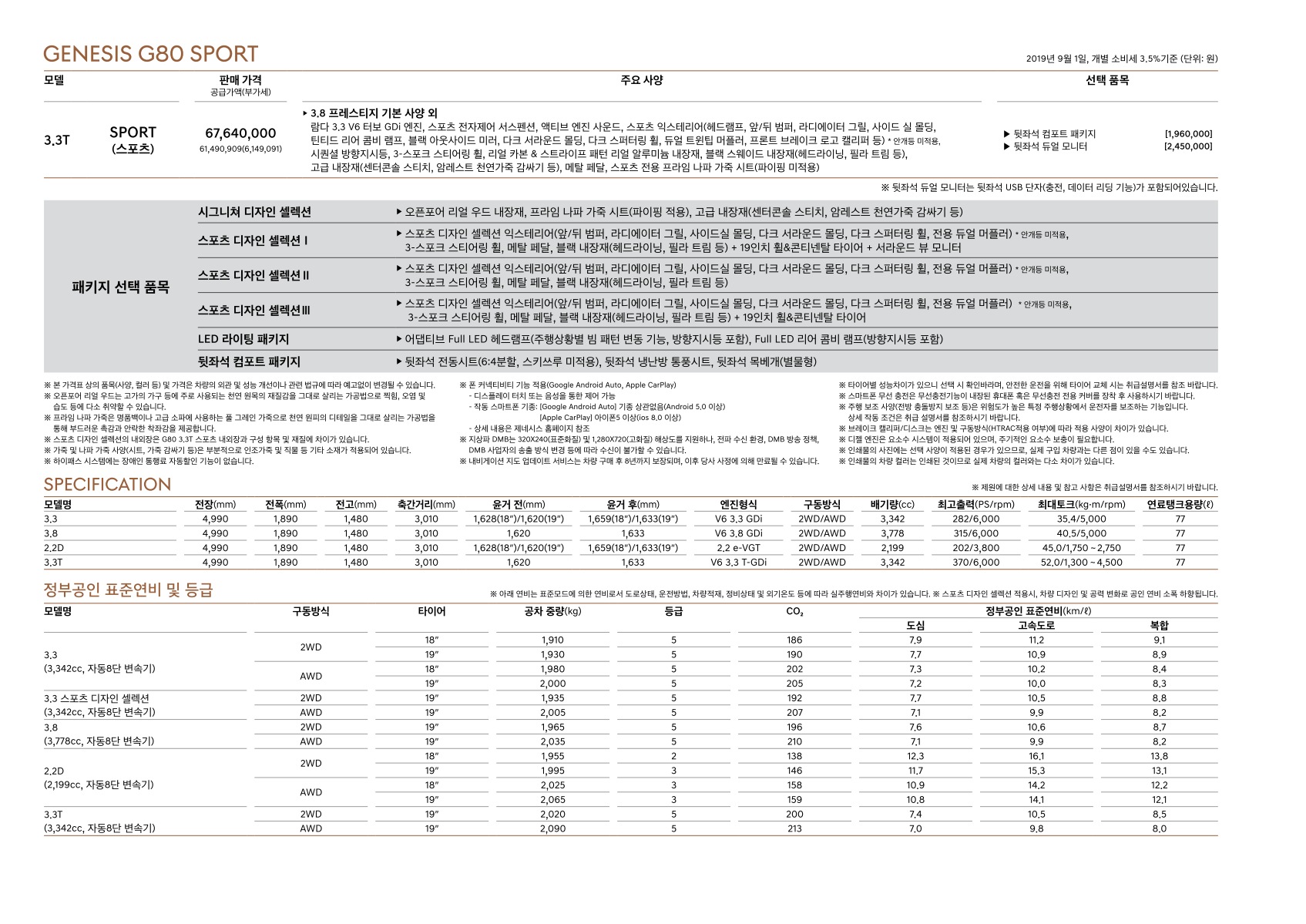 2019년 10월 제네시스 G70 신차가격표 (2020년형 G70 출시)