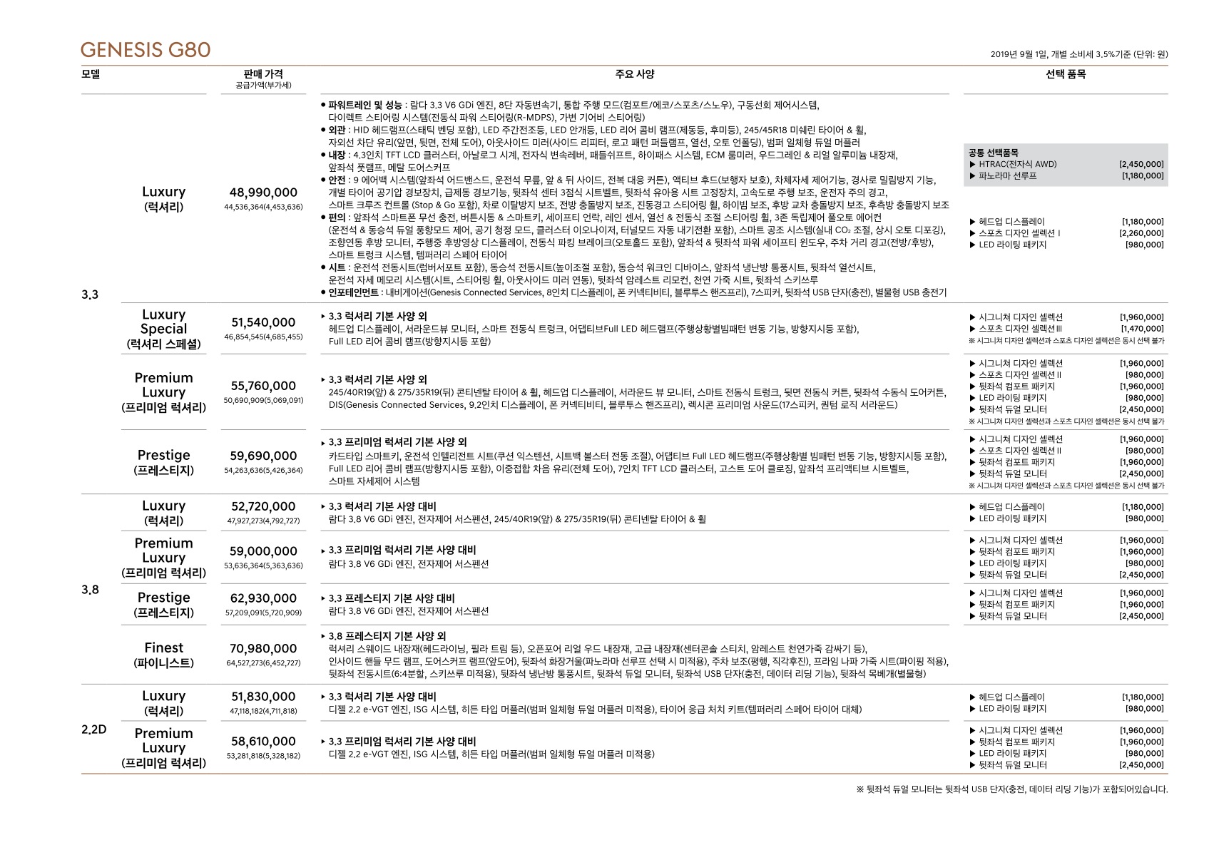 2019년 2월 제네시스 G90 신차가격표 (G90L 리무진 출시)
