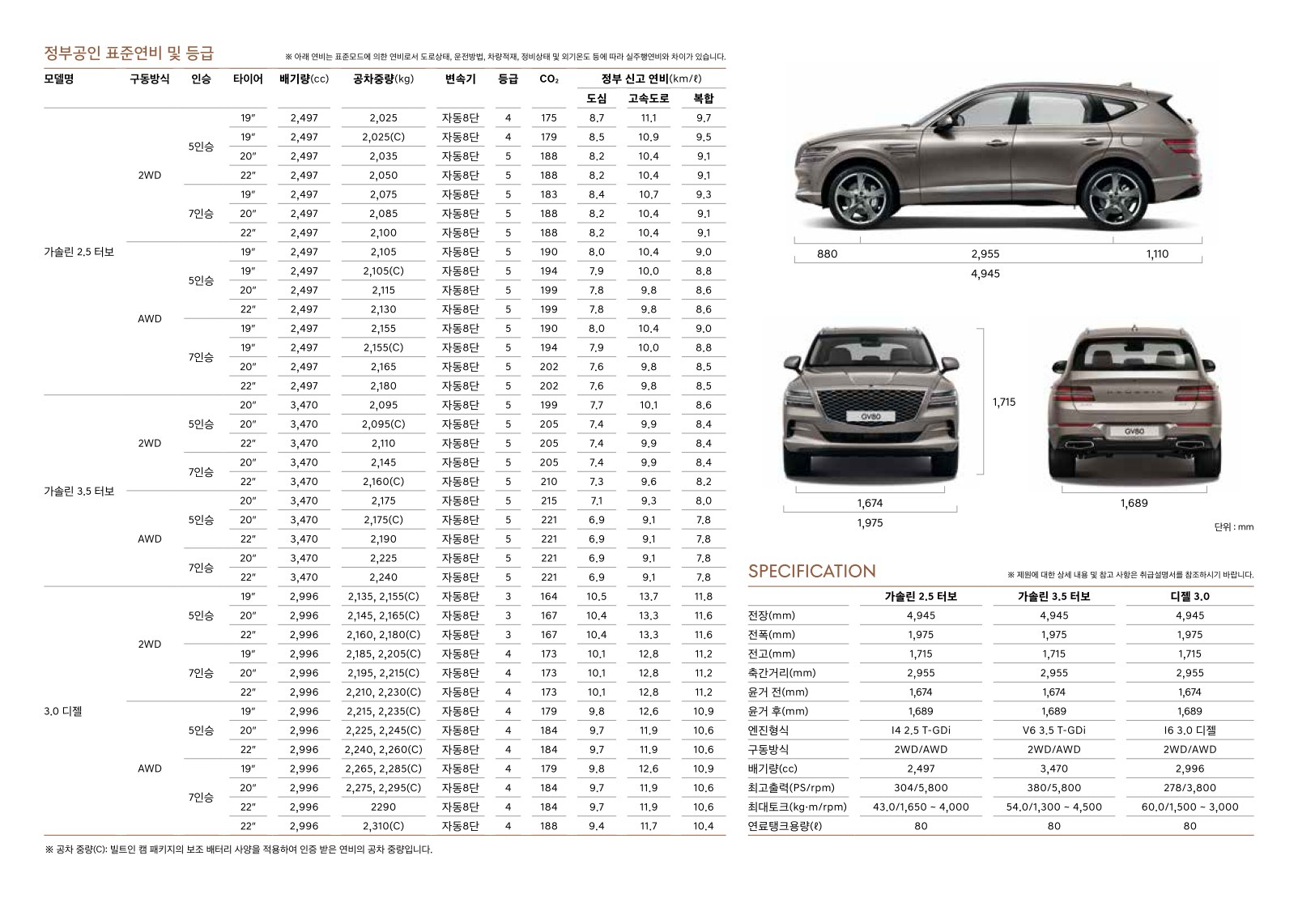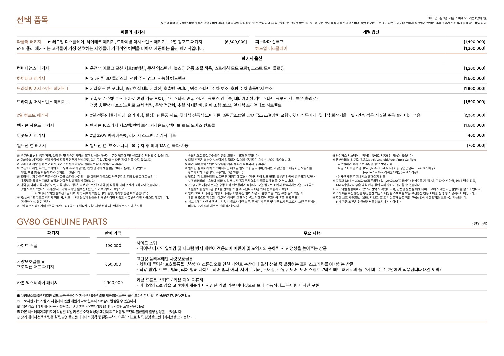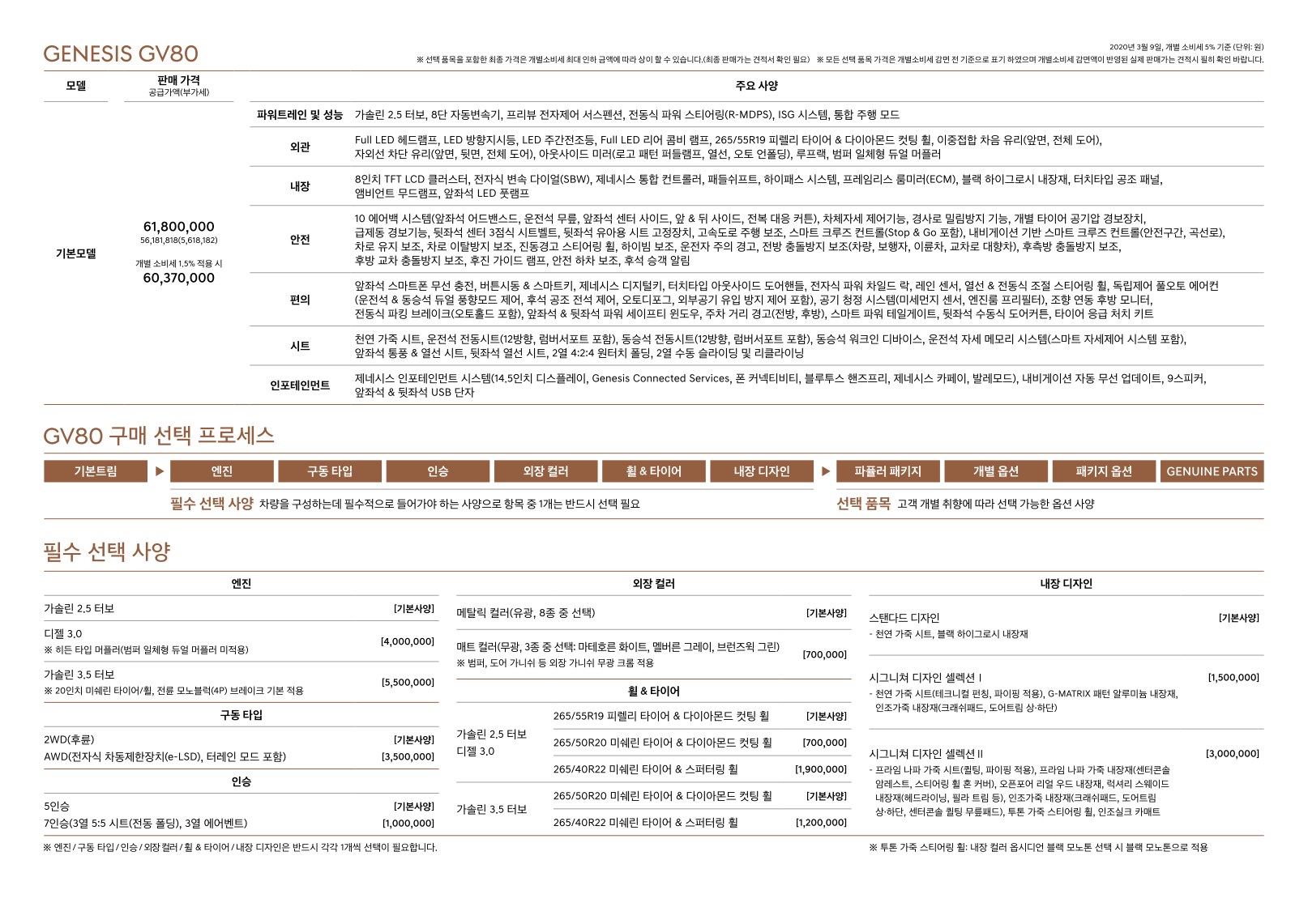 2020년 3월 제네시스 GV80 신차가격표 (2.5터보 및 3.5터보 휘발류 모델 출시)