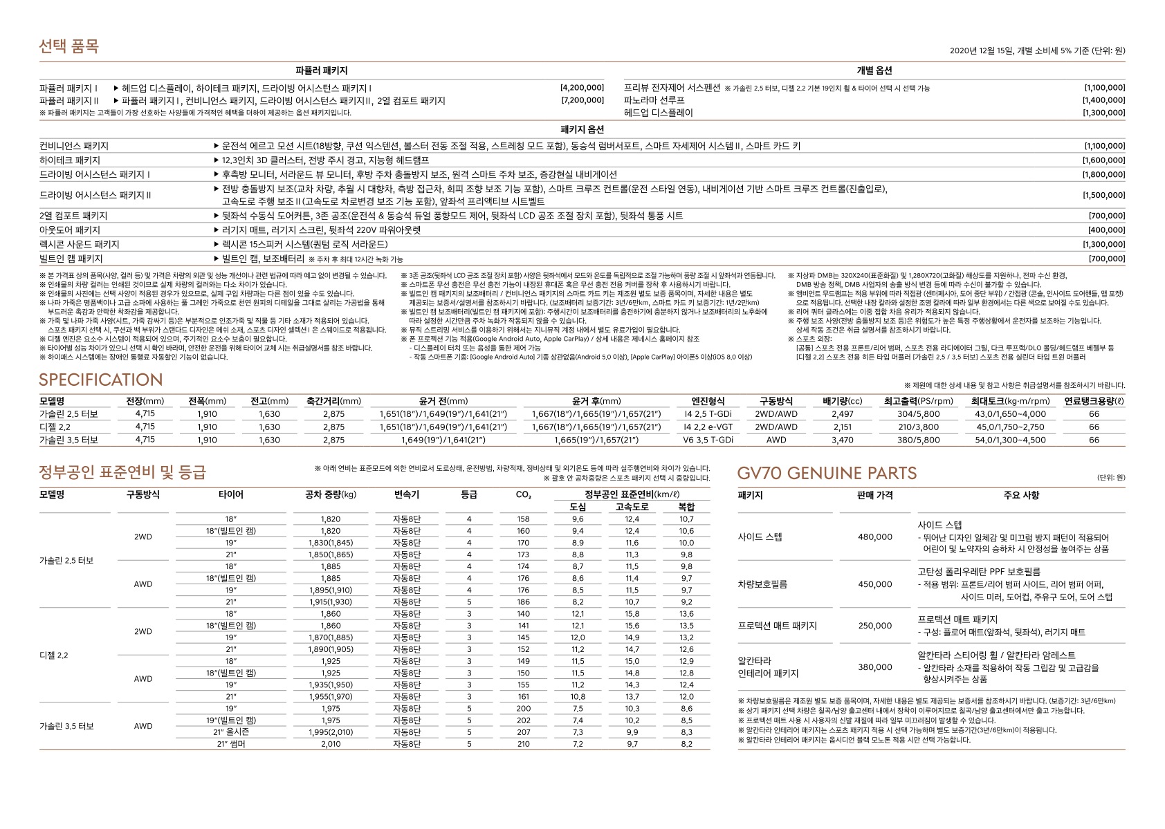 2020년 12월 GV70 신차가격표