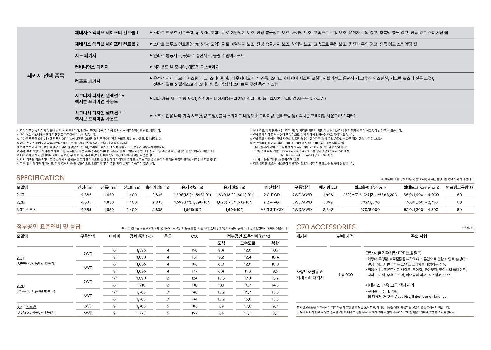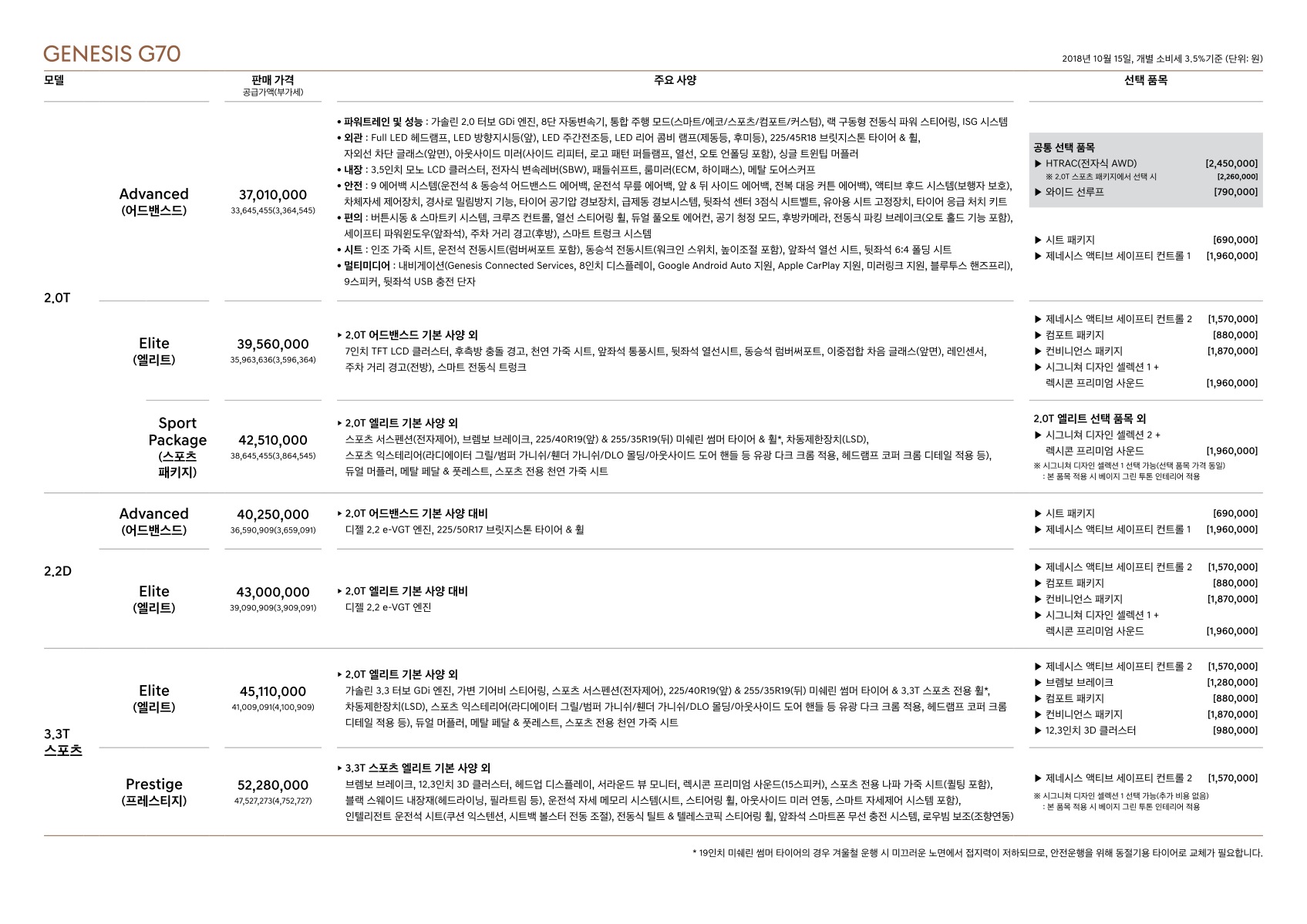 2018년 10월 제네시스 G70 신차가격표 (2019년형 G70)