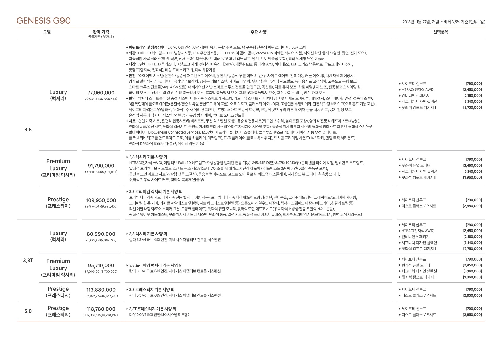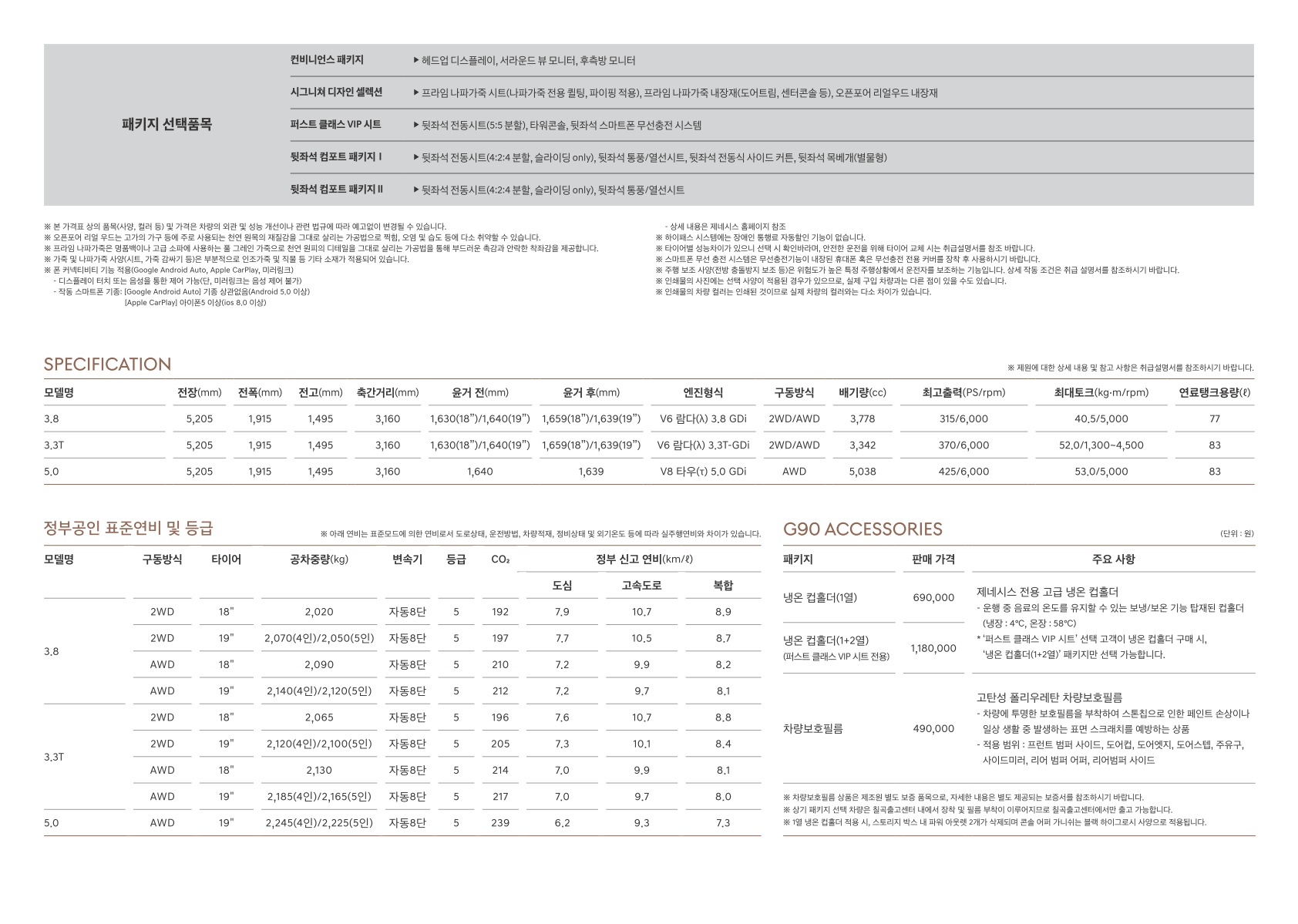 2019년 2월 제네시스 G90 신차가격표 (G90L 리무진 출시)