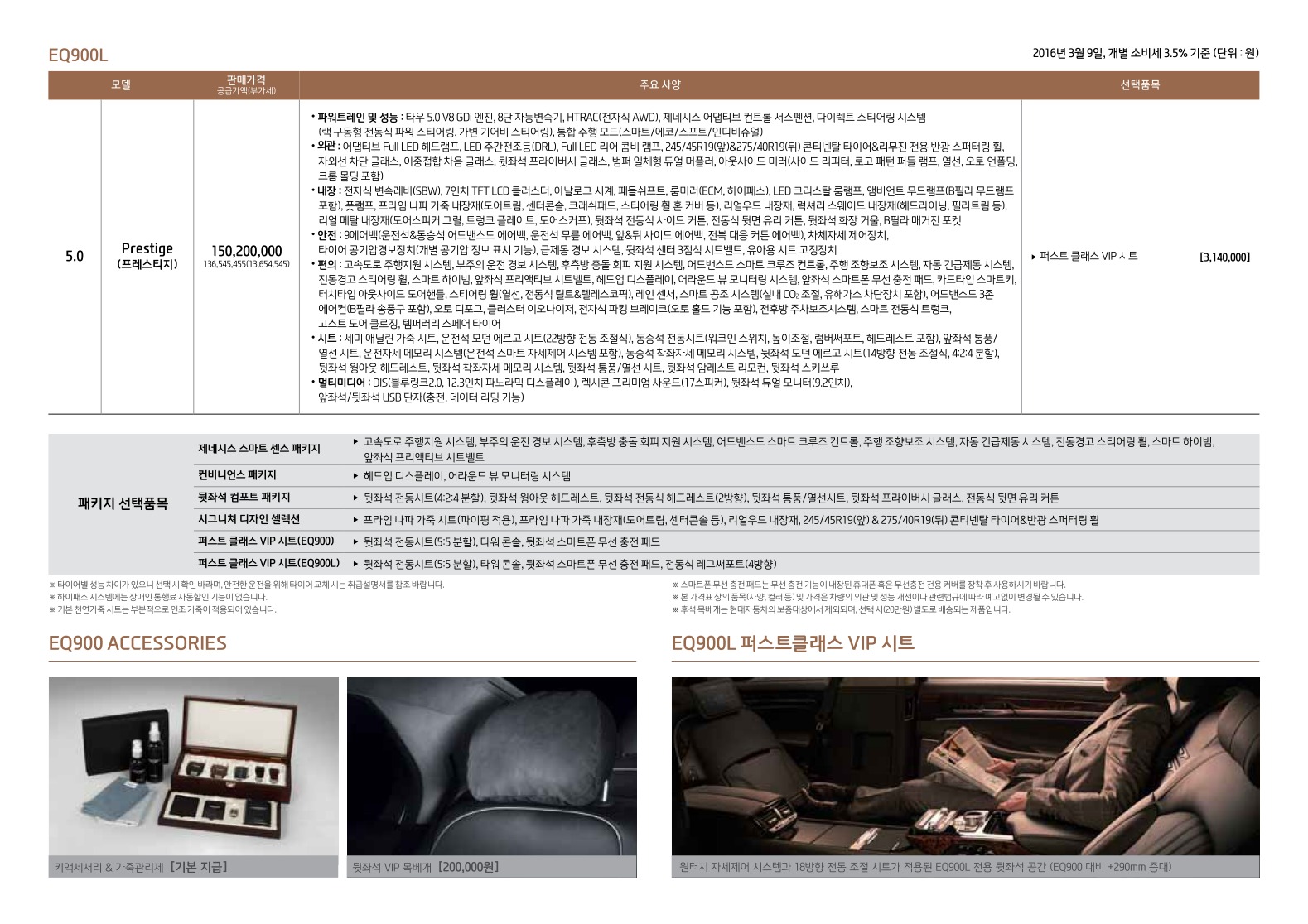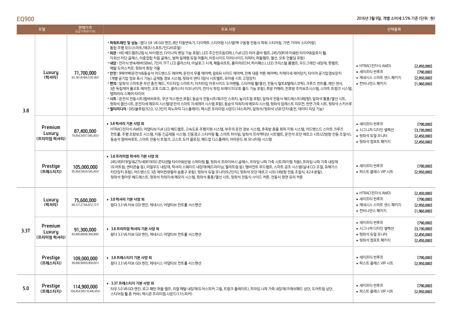 2015년 12월 제네시스 EQ900 신차가격표 (에쿠스 후속)