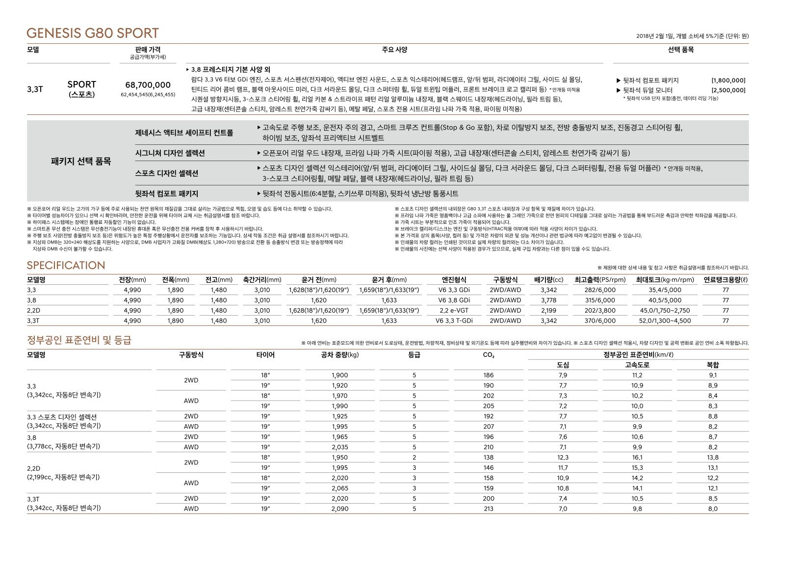 2018년 8월 G80 신차가격표 (2019년형 출시)