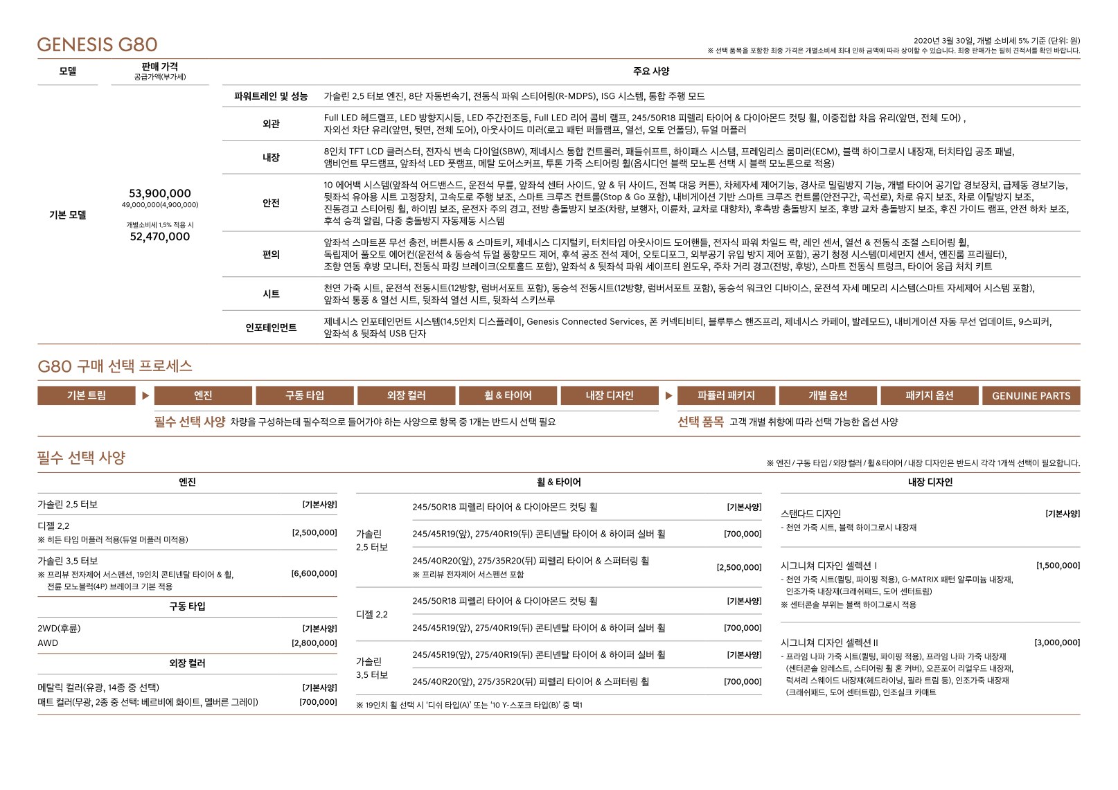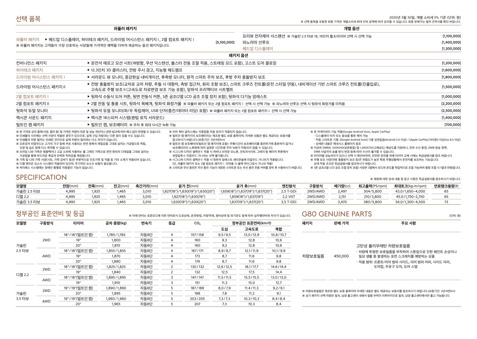 2020년 3월 제네시스 G80 신차가격표 (3세대 G80 출시)
