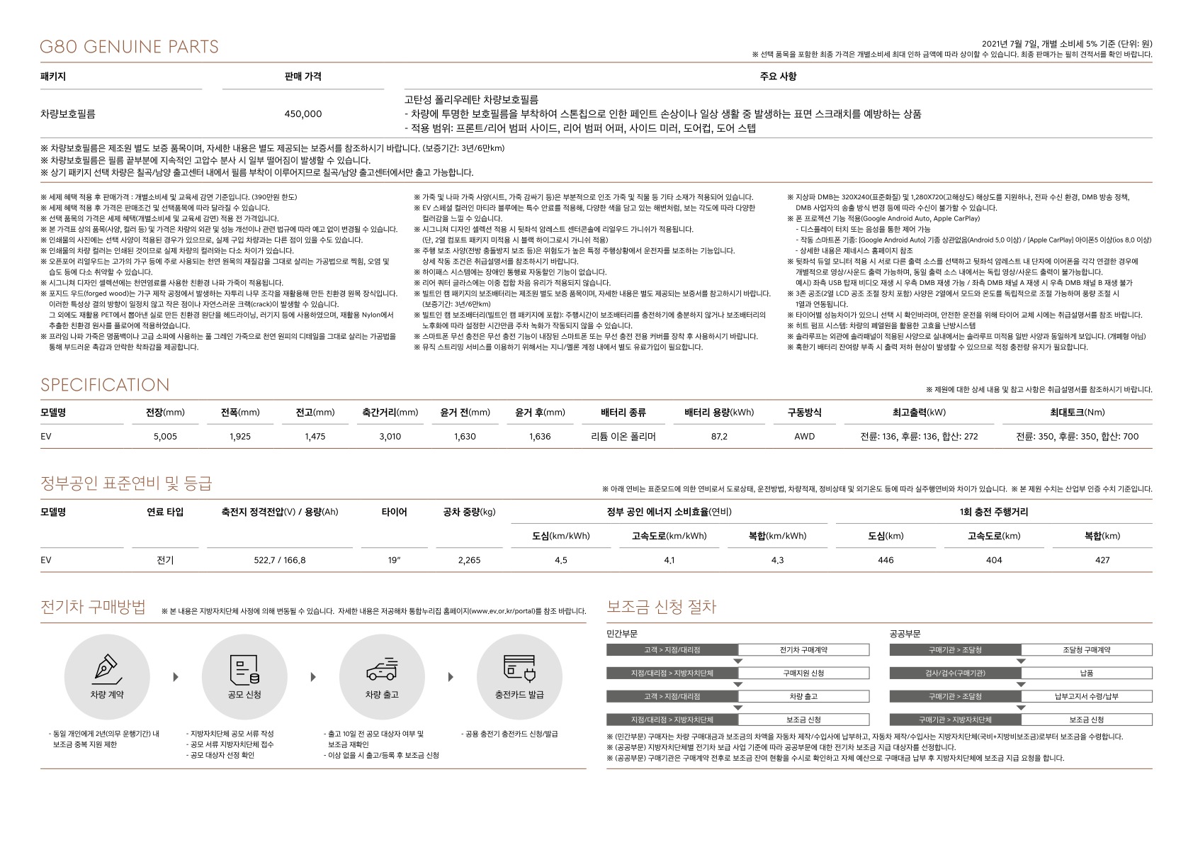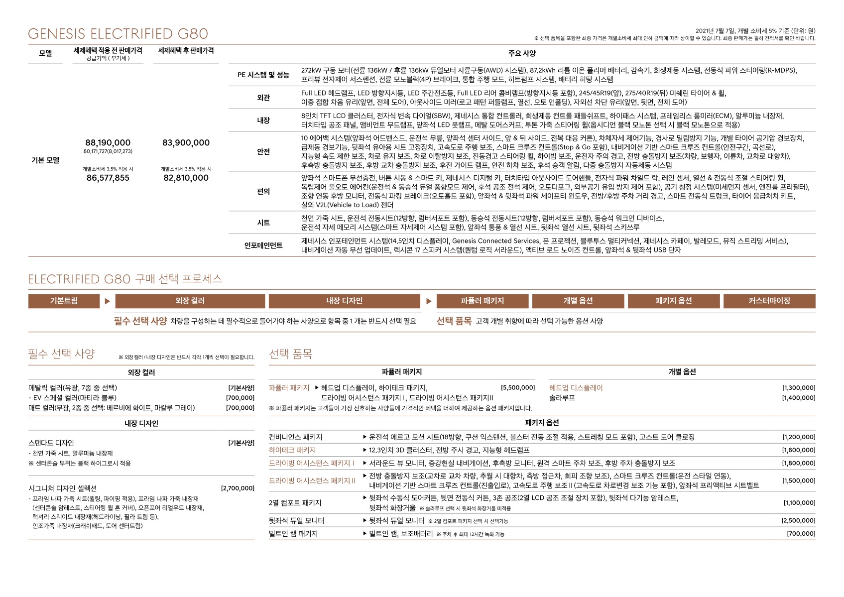 2021년 7월 일렉트릭파이드 G80 가격표 (G80 전기차 출시)
