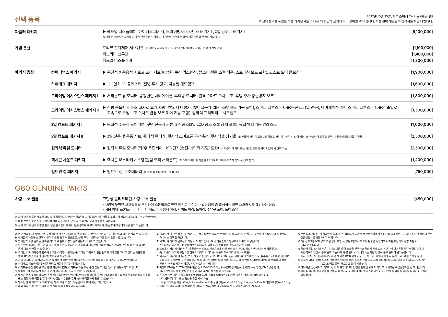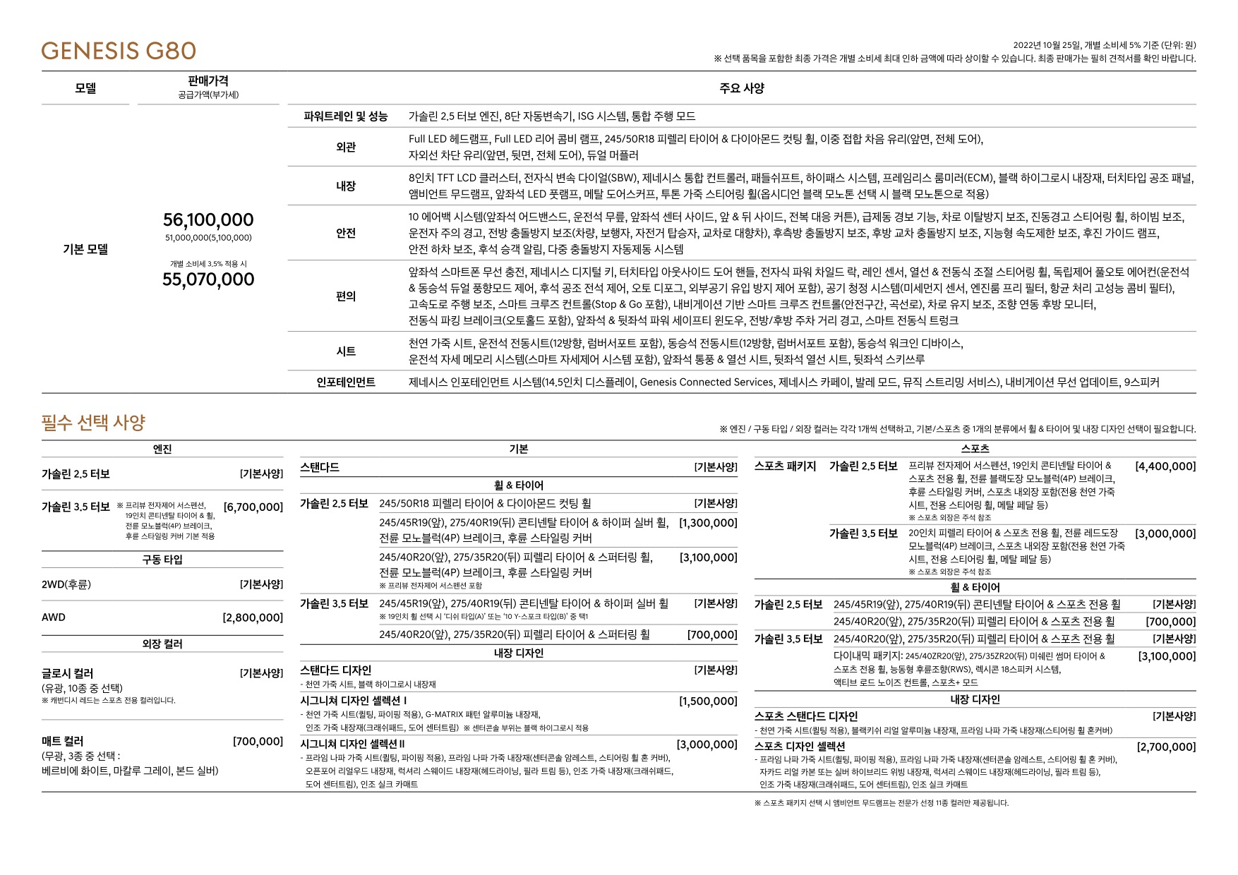 2022년 10월 G80 신차가격표 (2023년형 G80 출시)