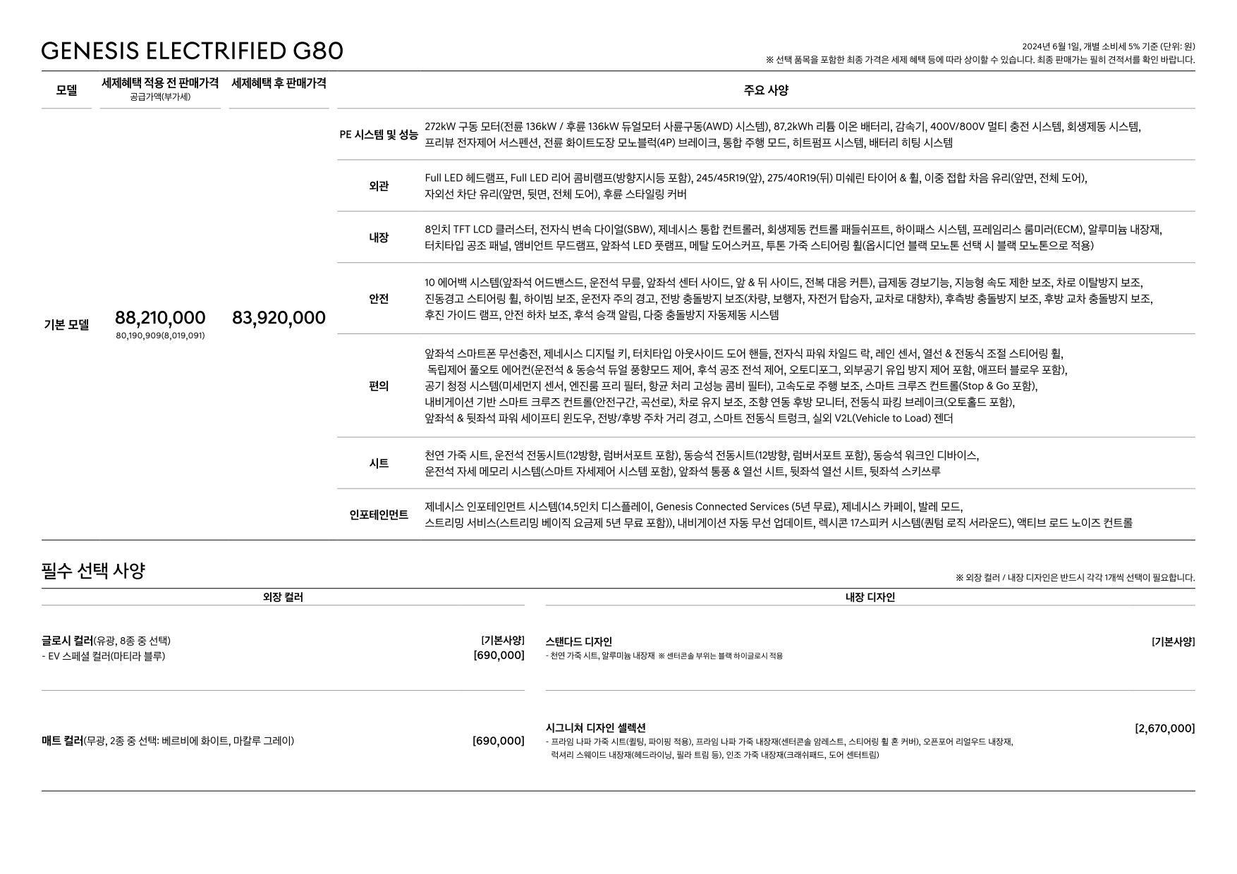 2024년 6월 제네시스 일렉트릭파이드 G80 신차가격표 (G80 전기차)