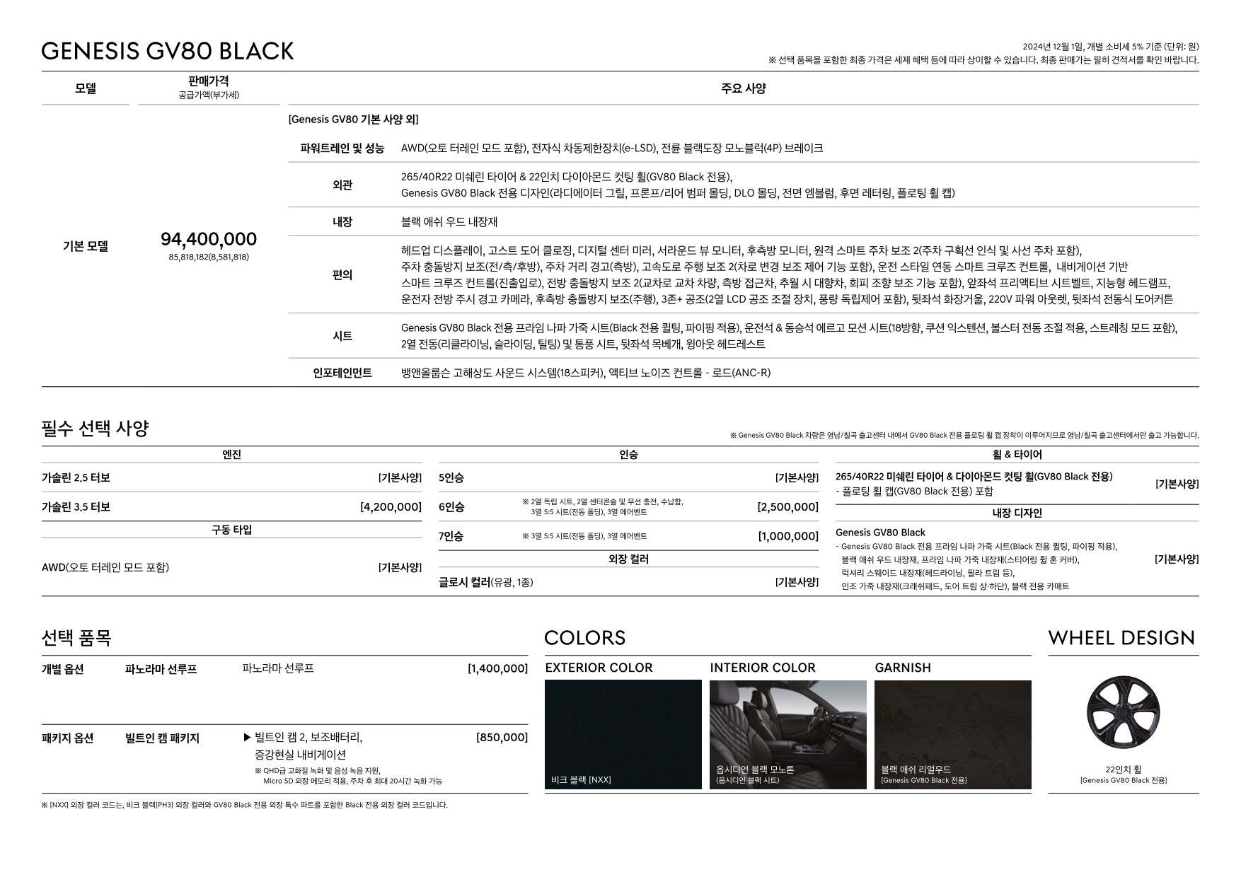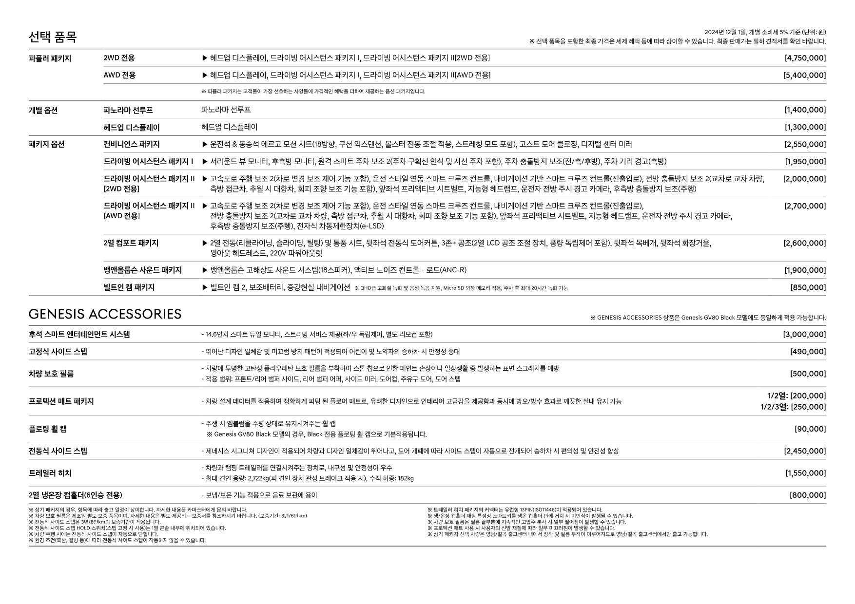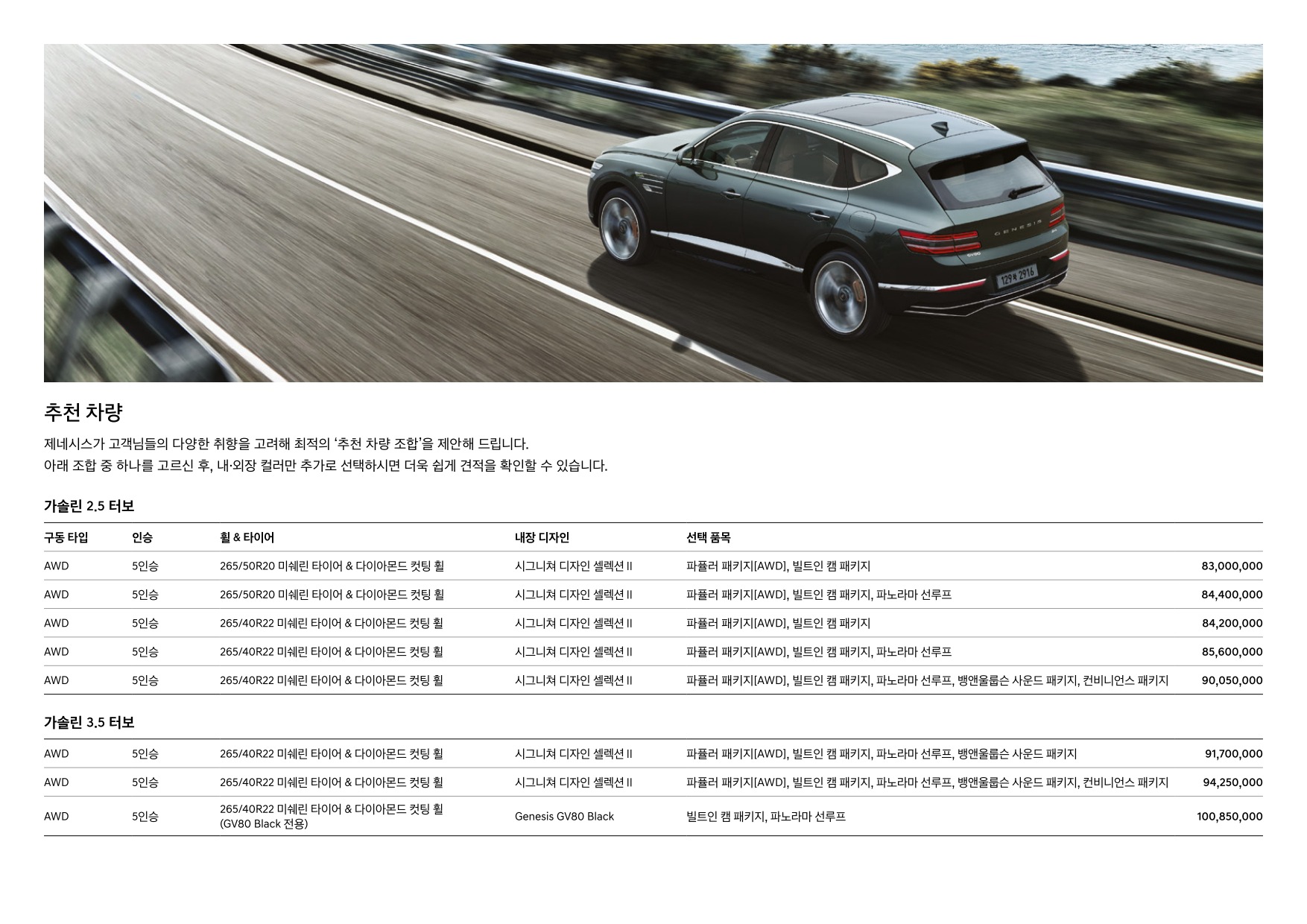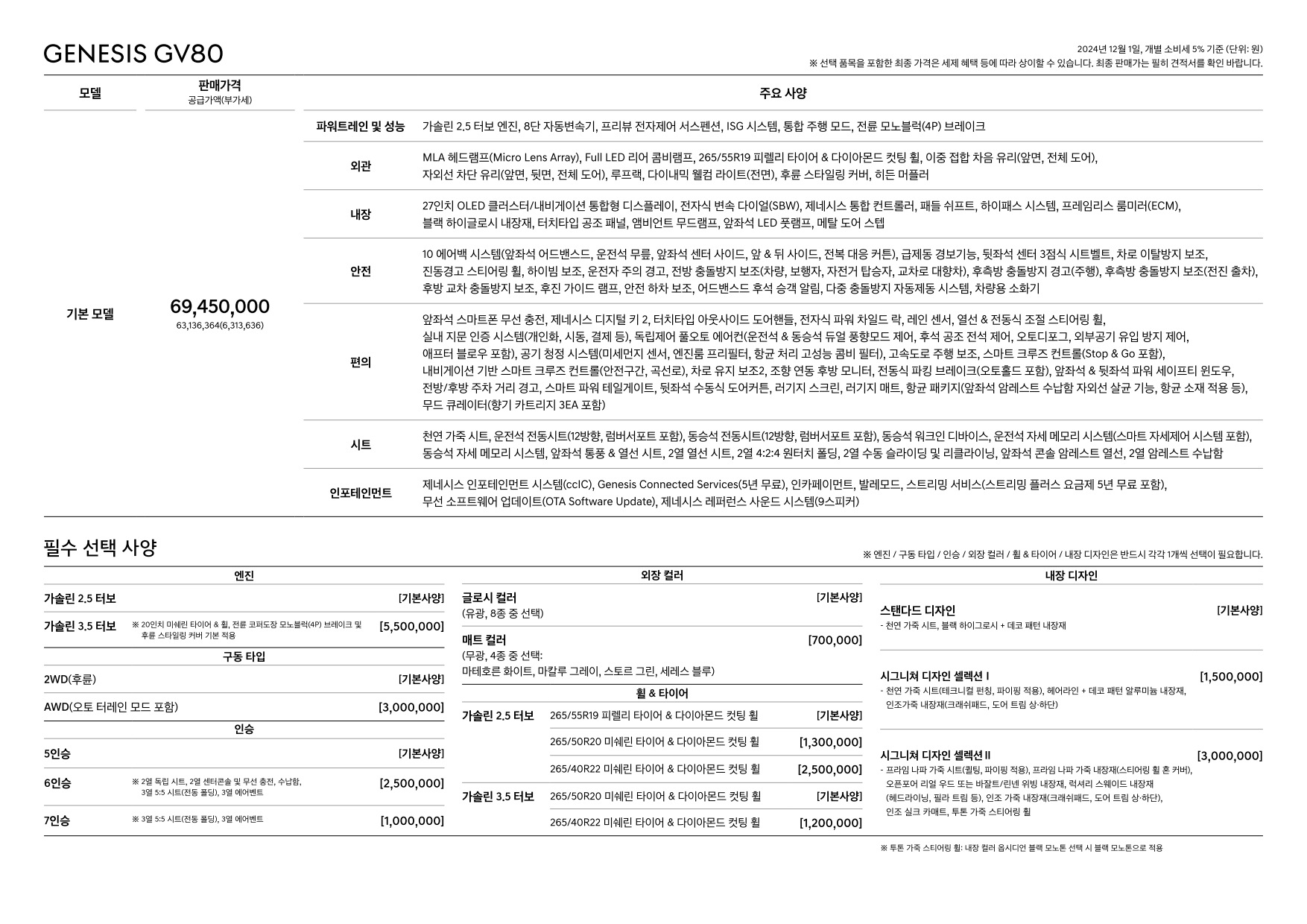 2024년 12월 제네시스 GV80 신차가격표