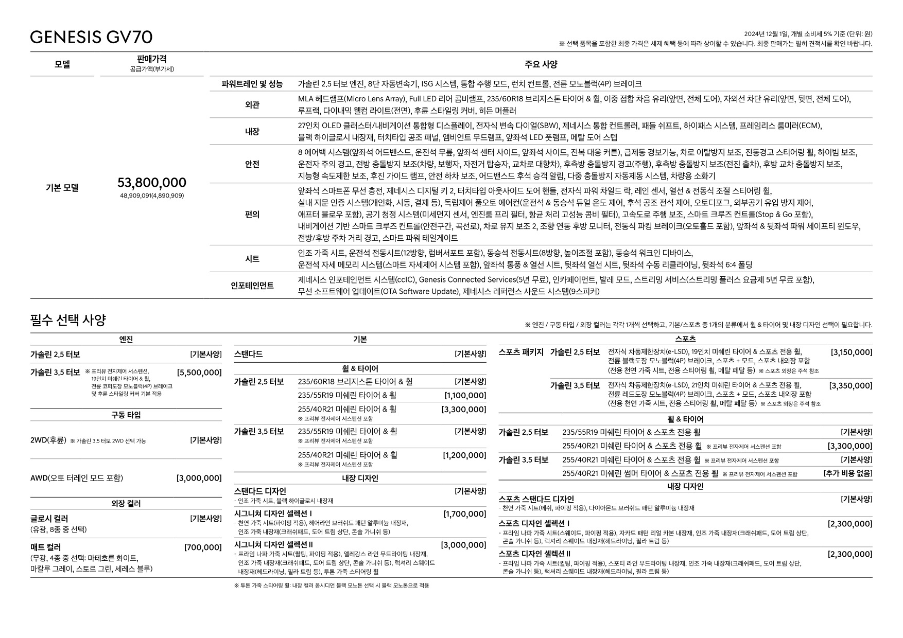 2024년 12월 제네시스 일렉트릭파이드 GV70 가격표 (GV70 전기차)