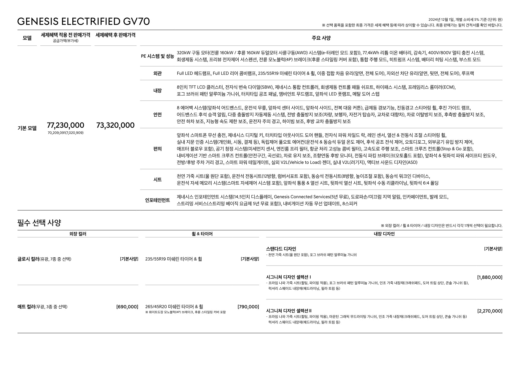 2024년 12월 제네시스 일렉트릭파이드 GV70 가격표 (GV70 전기차)