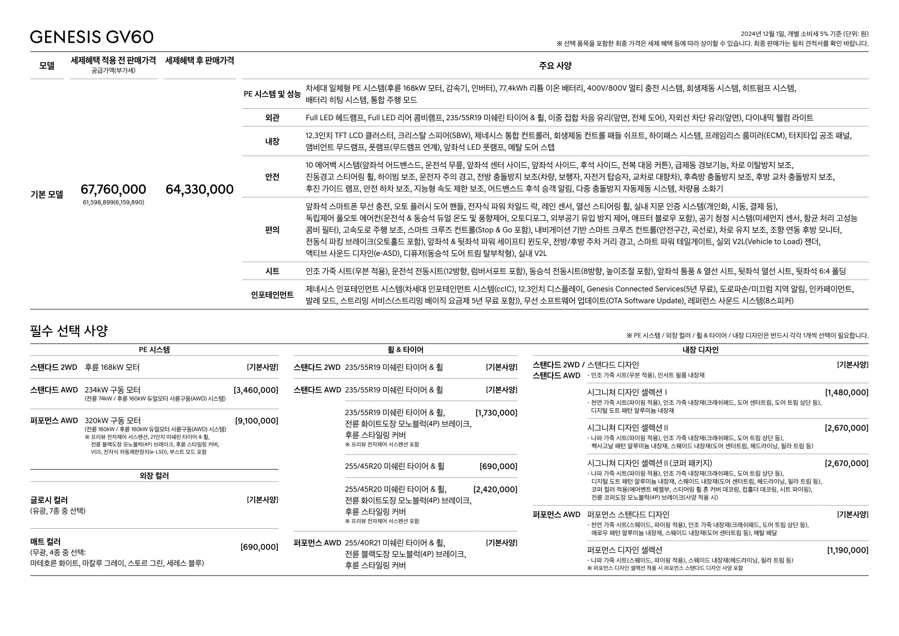 2024년 12월 제네시스 일렉트릭파이드 GV70 가격표 (GV70 전기차)