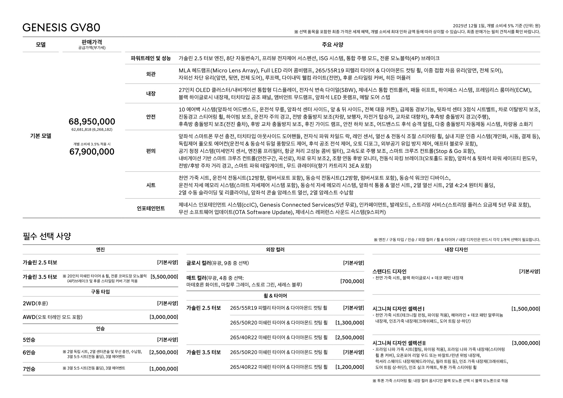 2025년 12월 일렉트릭파이드 G80 신차가격표 (G80전기차)