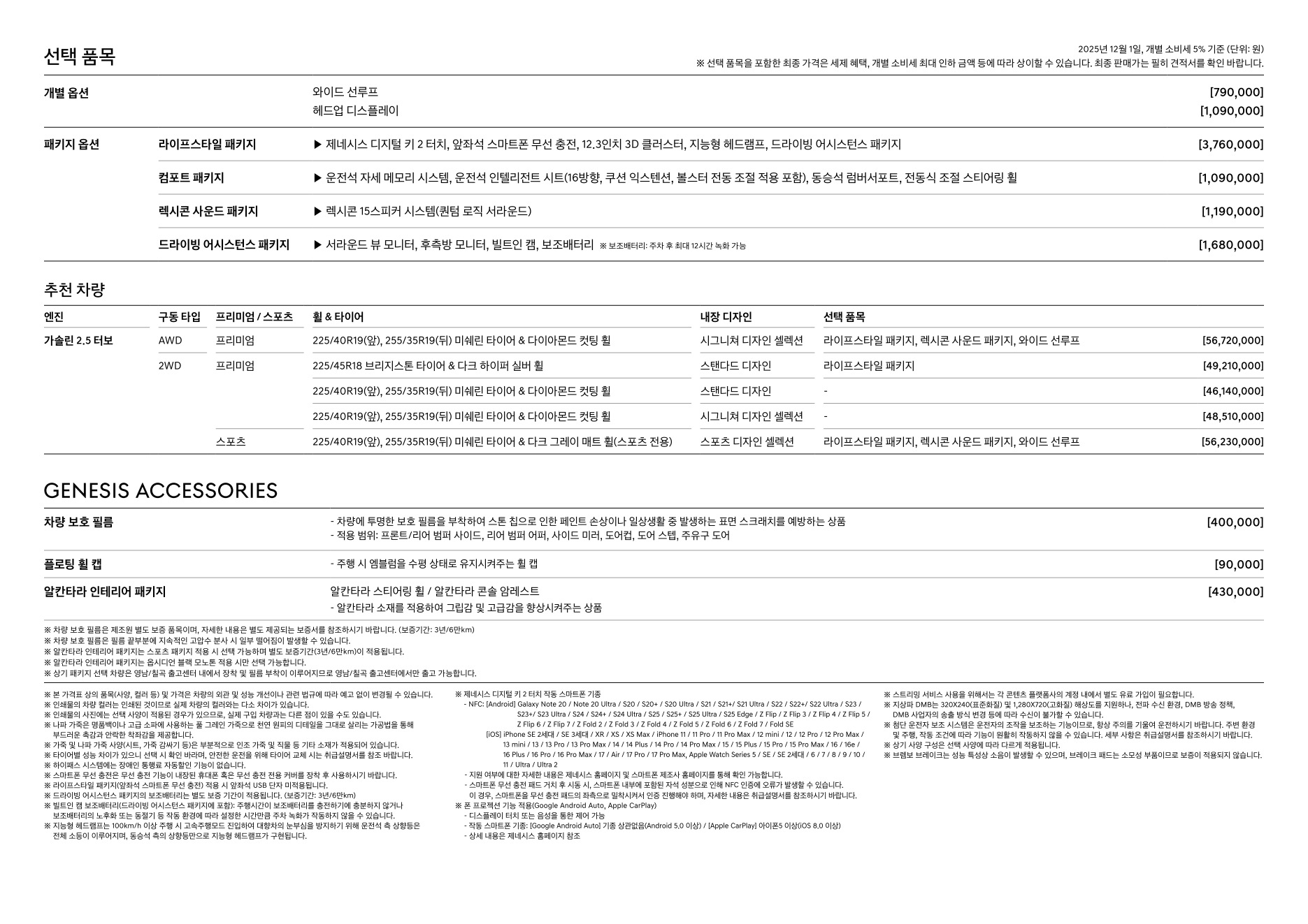 2025년 12월 G70 신차가격표