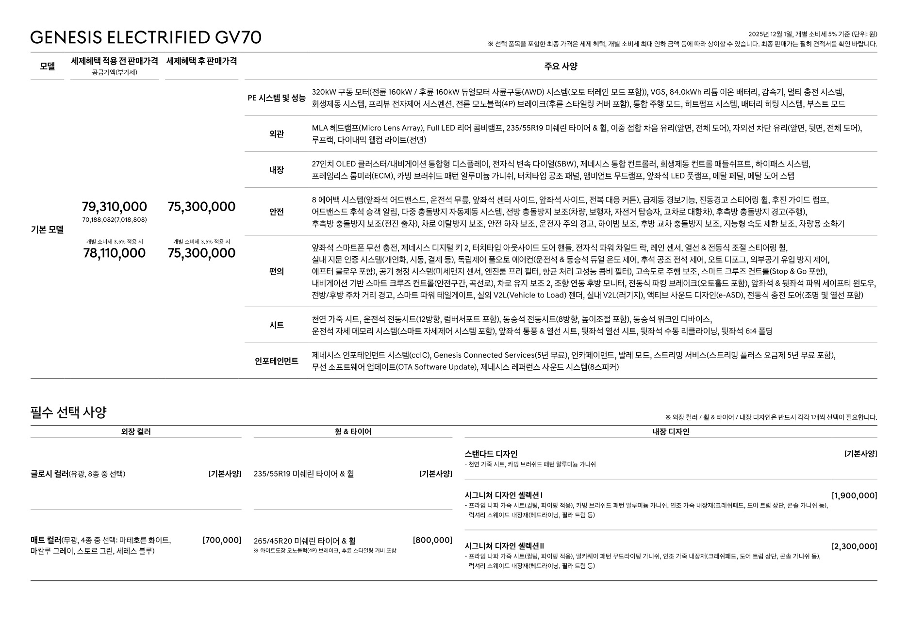 2025년 12월 일렉트릭파이드 GV70 신차가격표 (GV70 전기차)