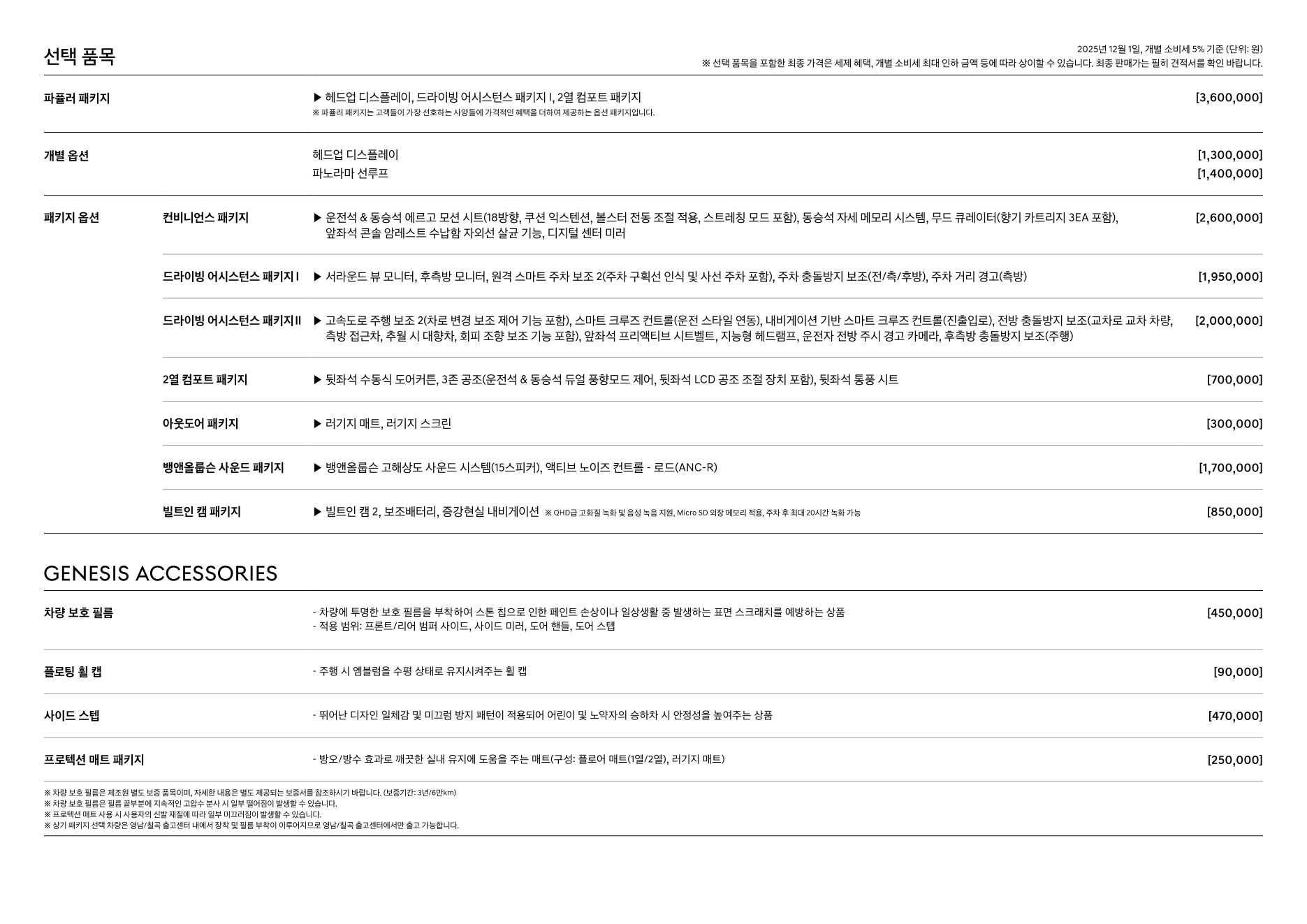 2025년 12월 GV70 신차가격표