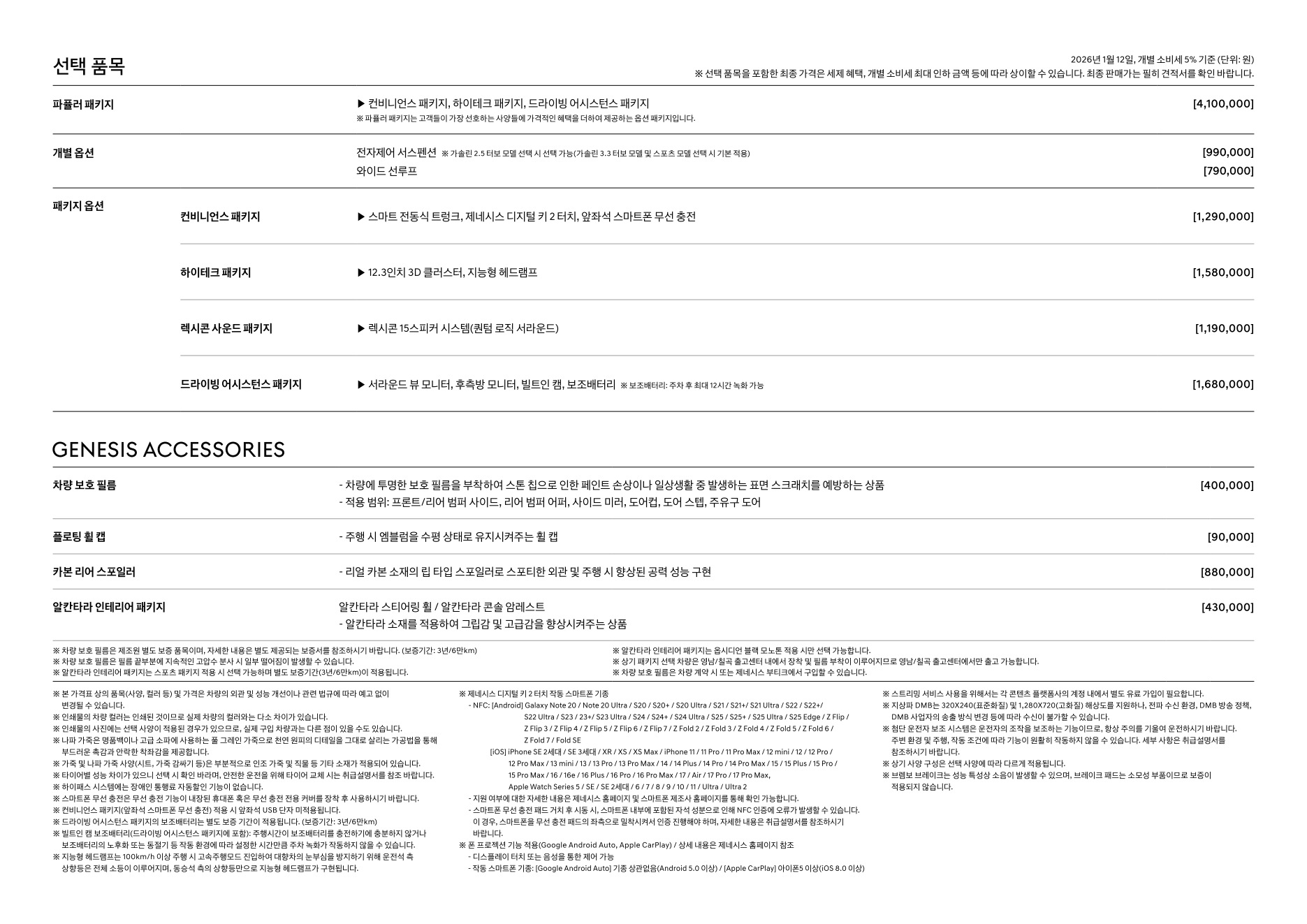 * 상기 가격표의 저작권은 해당 제조사에 있습니다.
