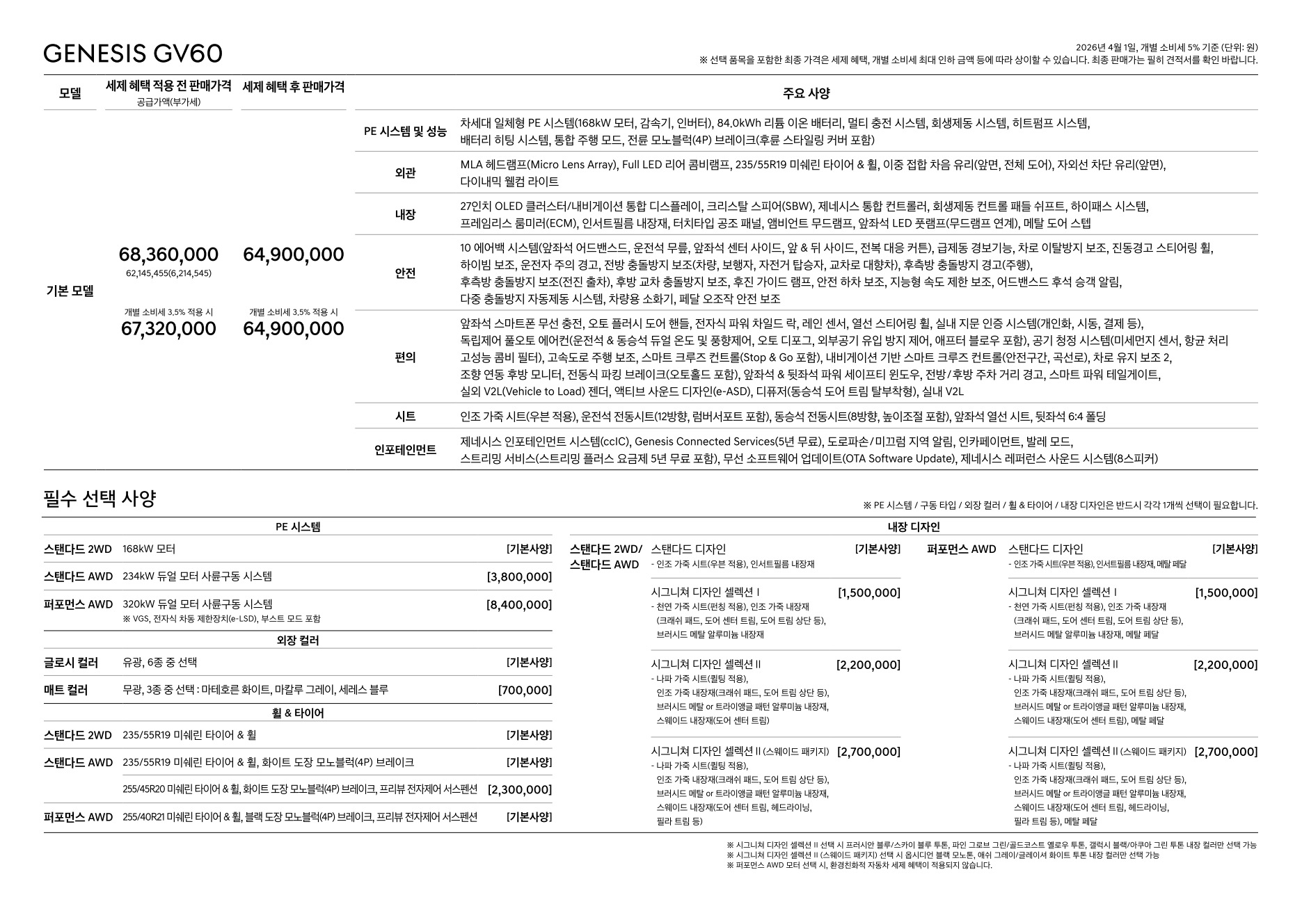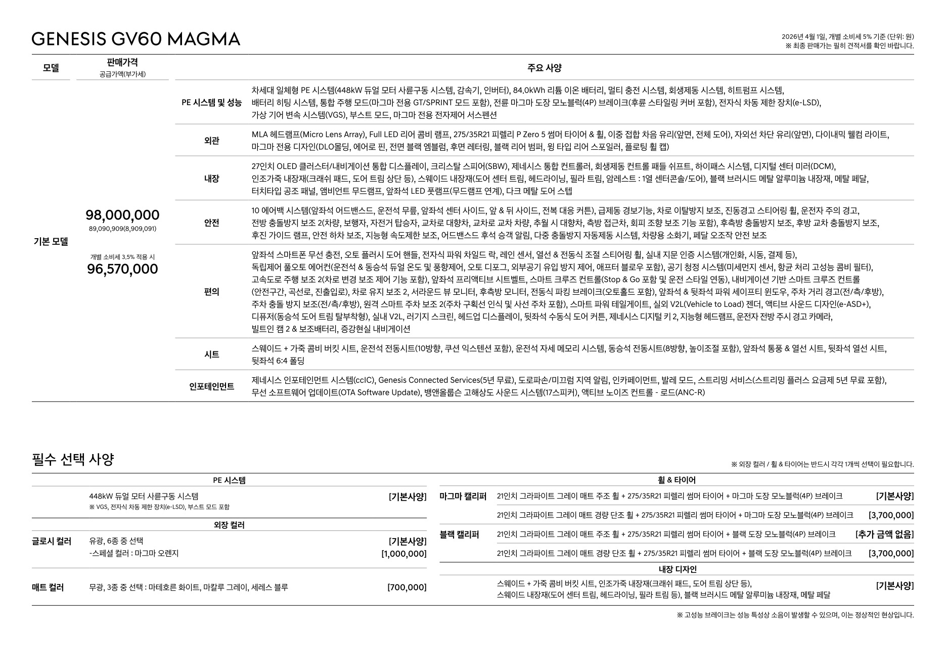 2026년 4월 제네시스 GV60 & GV60 마그마 신차가격표 (2027년형 GV60 출시)