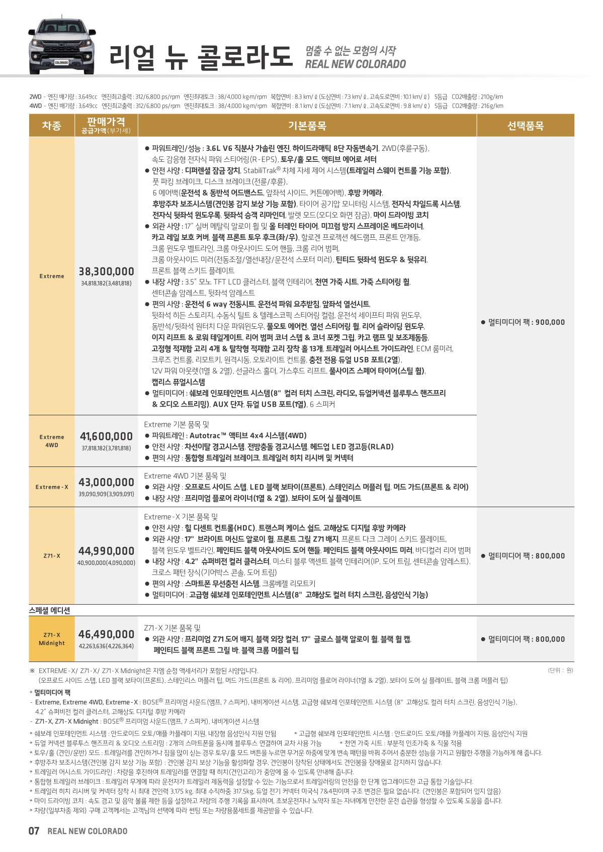 2021년 8월 콜로라도 신차가격표