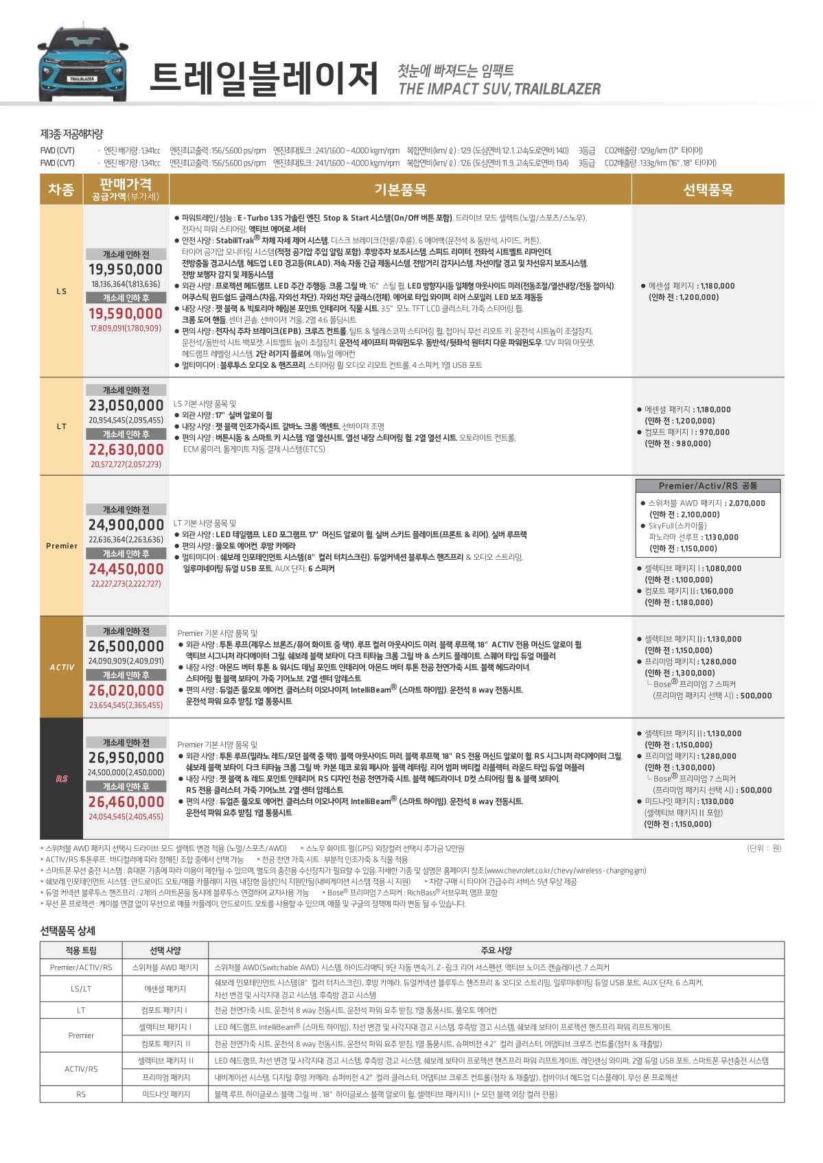 2021년 1월 트레일블레이저 신차가격표 (2022년형 출시)