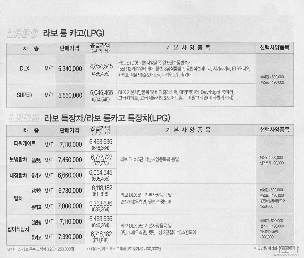 2005년 6월 다마스2 & 라보 신차가격표