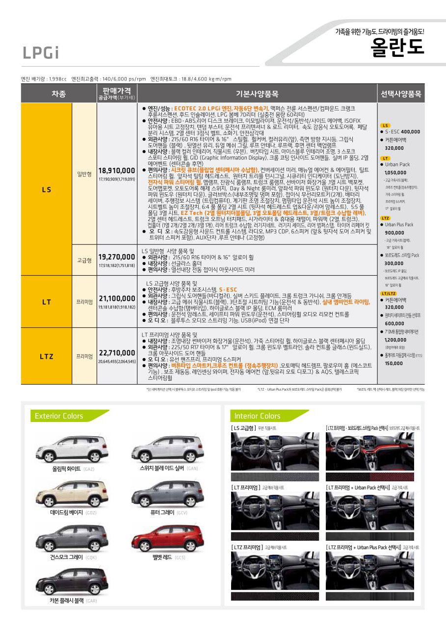 2011년 9월 올란도 신차가격표