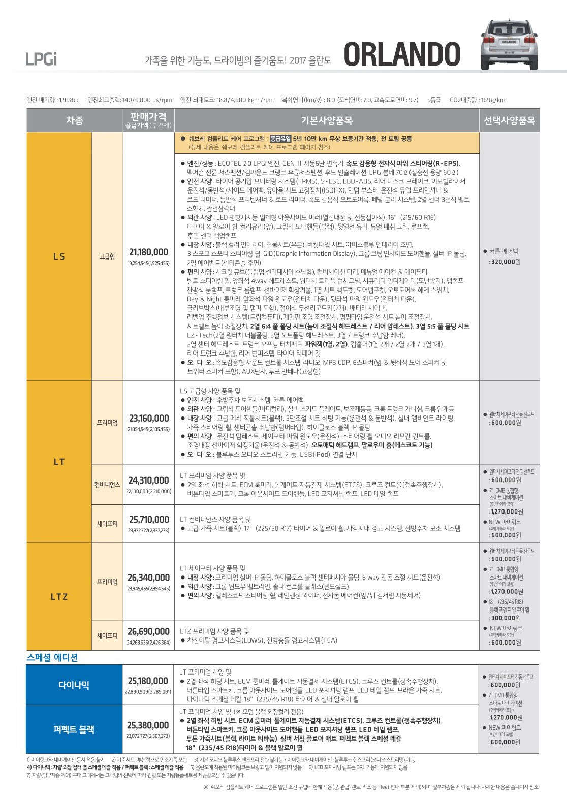 2017년 4월 올란도 신차가격표