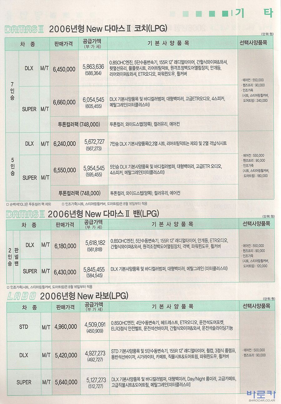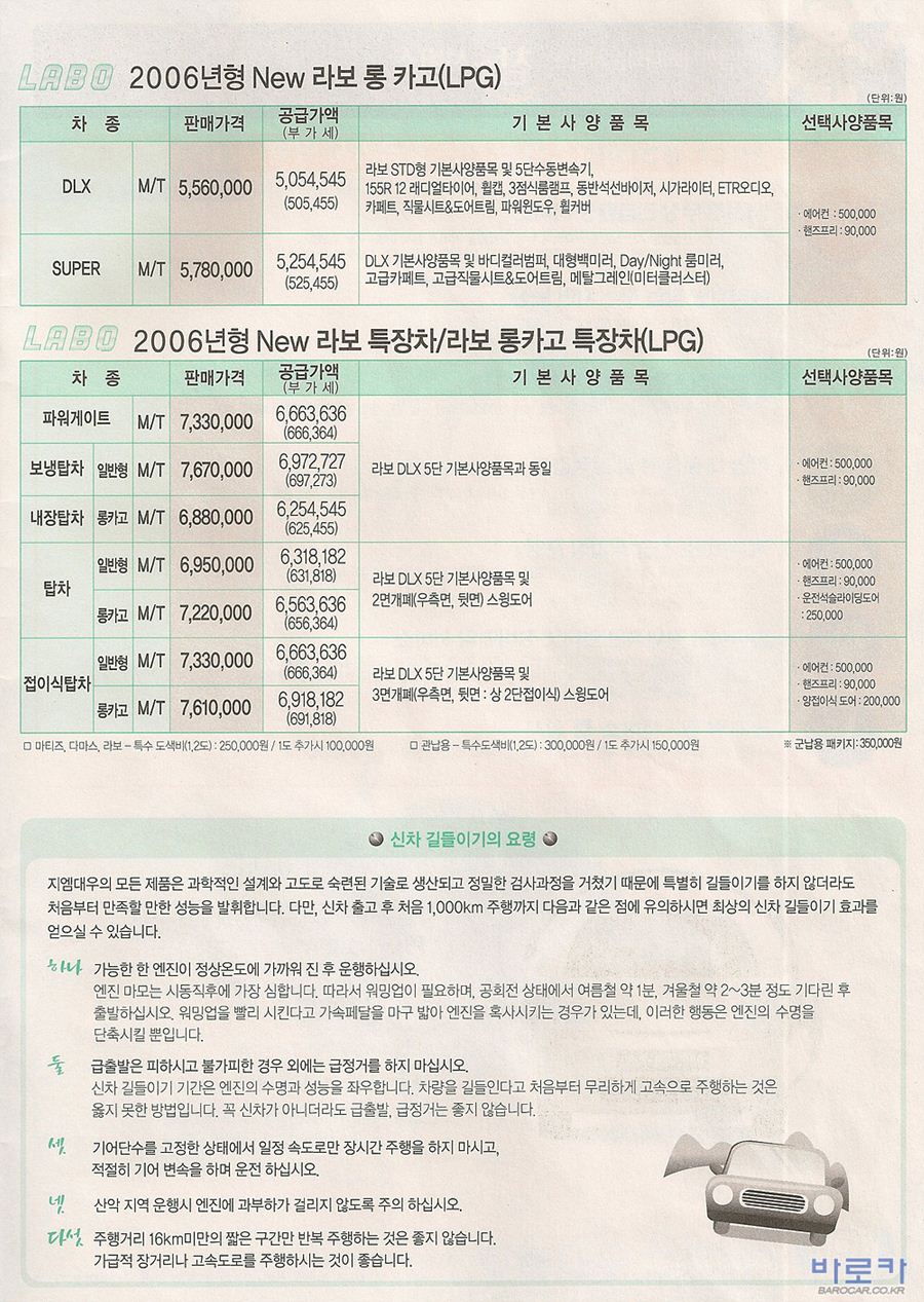 2006년 1월 뉴 다마스2 & 뉴 라보 신차가격표