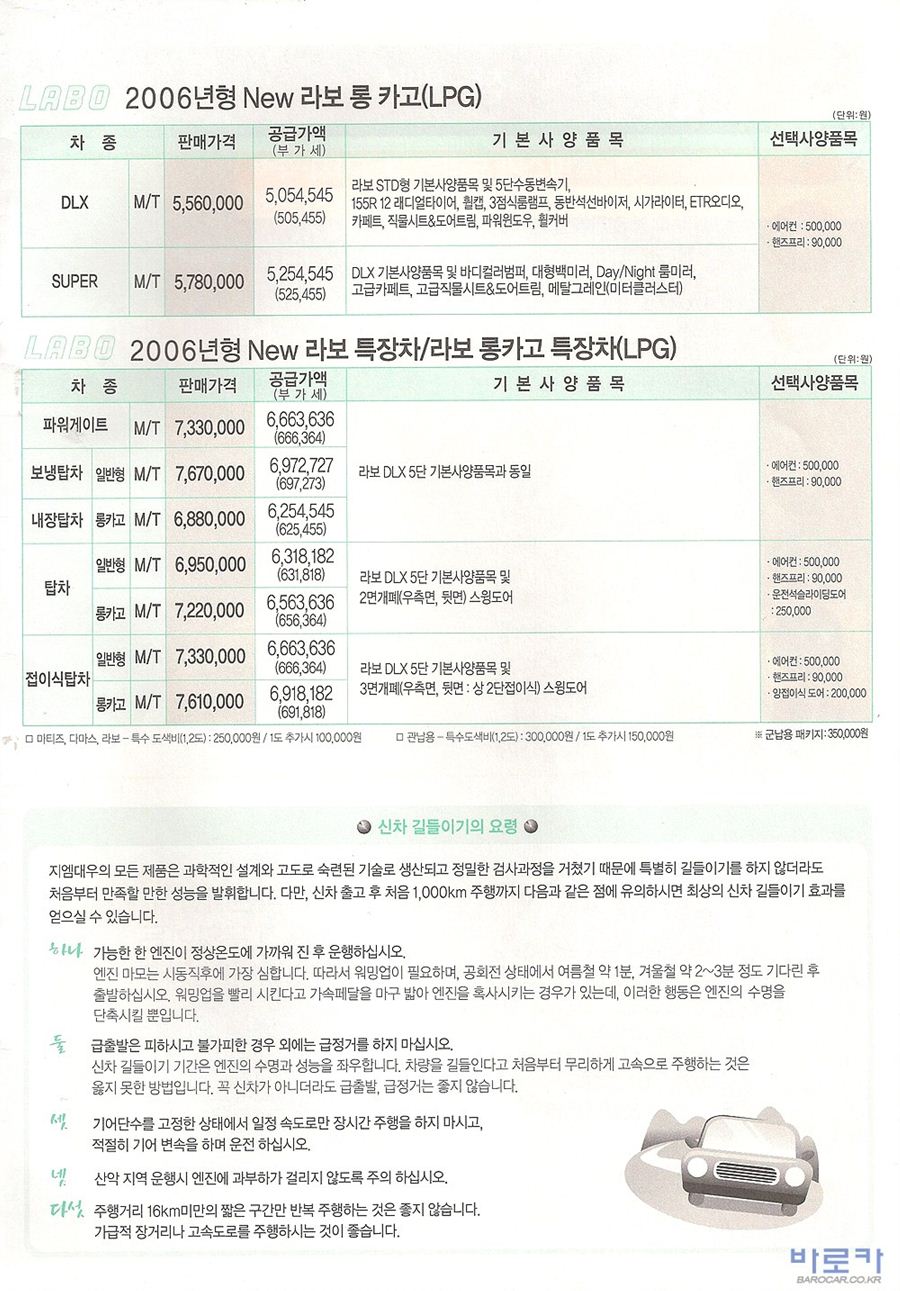 2006년 1월 뉴 다마스2 & 뉴 라보 신차가격표
