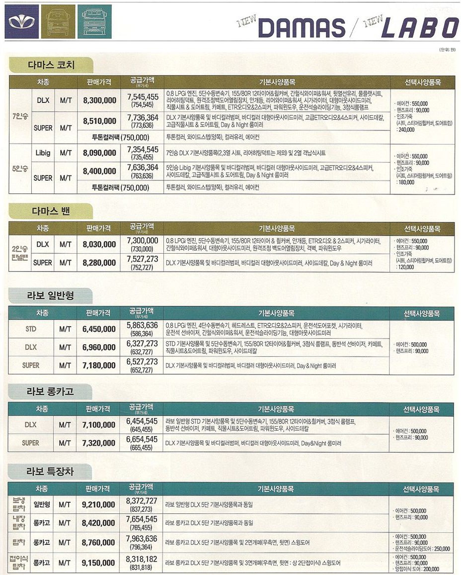 2009년 2월 뉴 다마스 & 뉴 라보 신차가격표