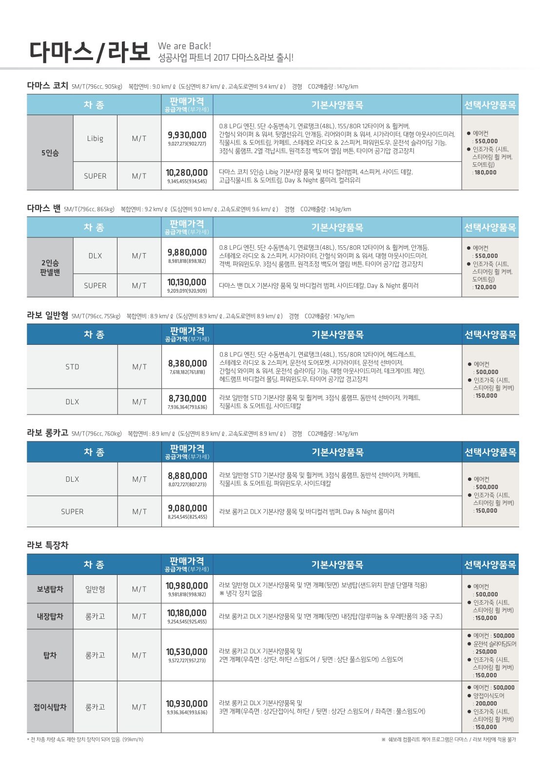 2017년 4월 다마스 & 라보 신차가격표