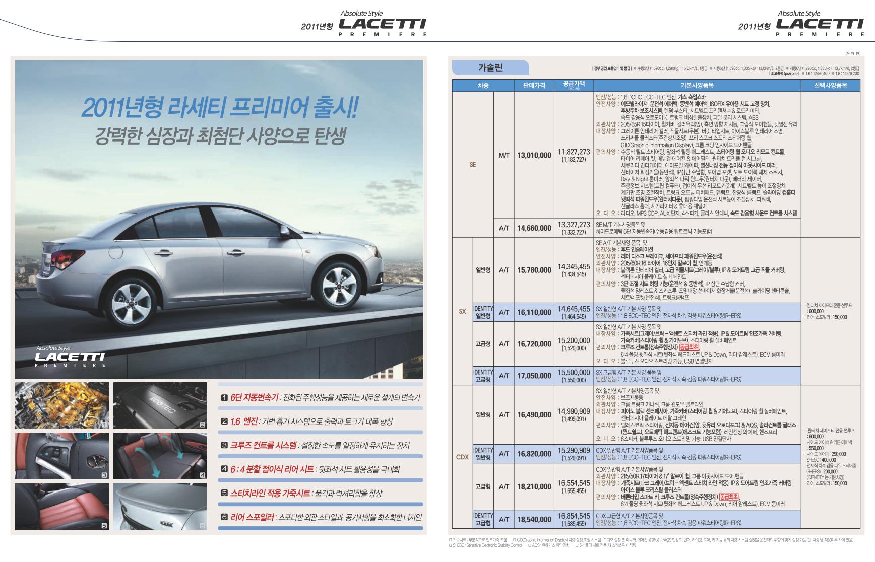 2010년 12월 라세티 프리미어 신차가격표