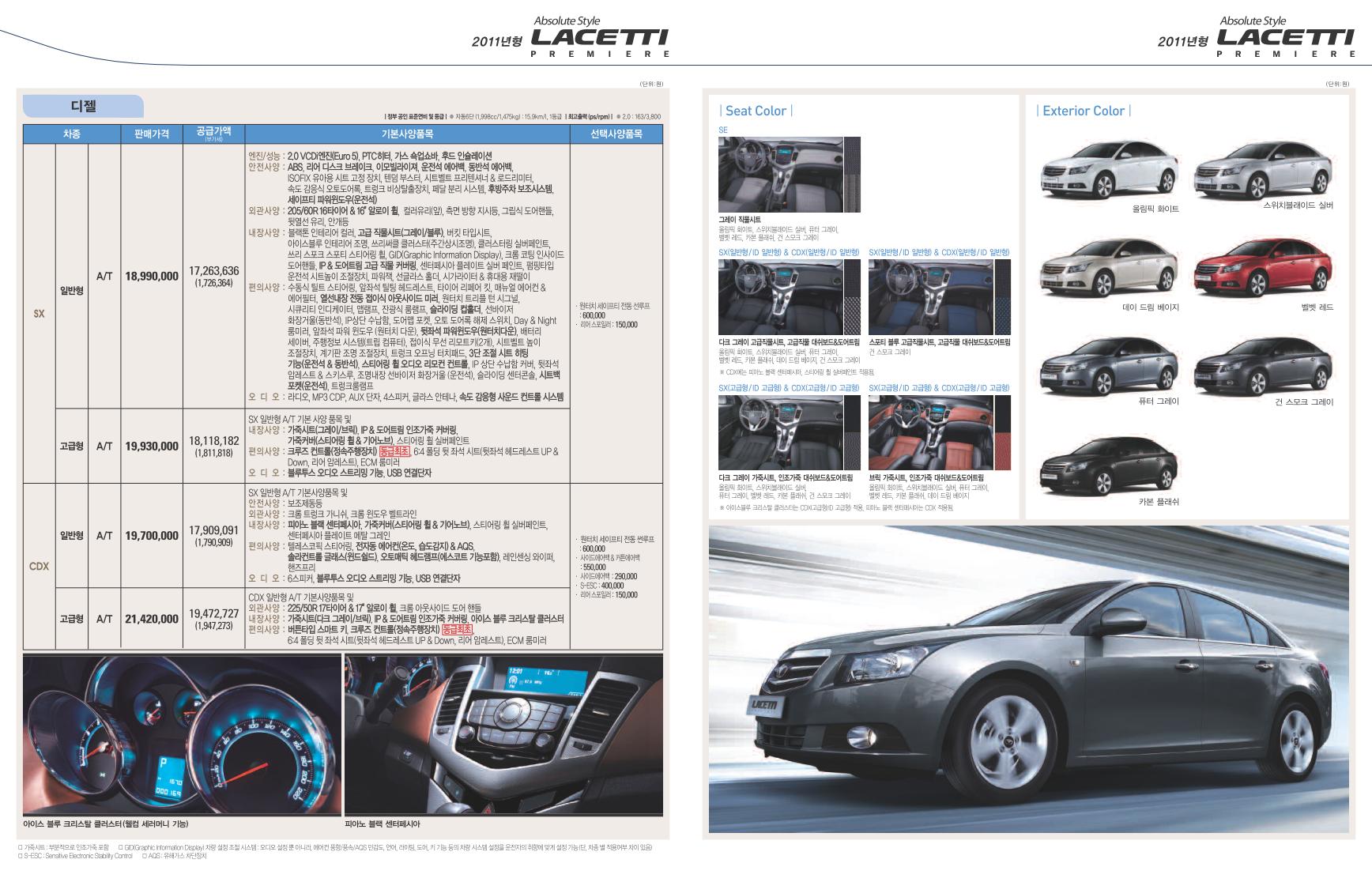 2010년 11월 라세티 프리미어 디젤 신차가격표