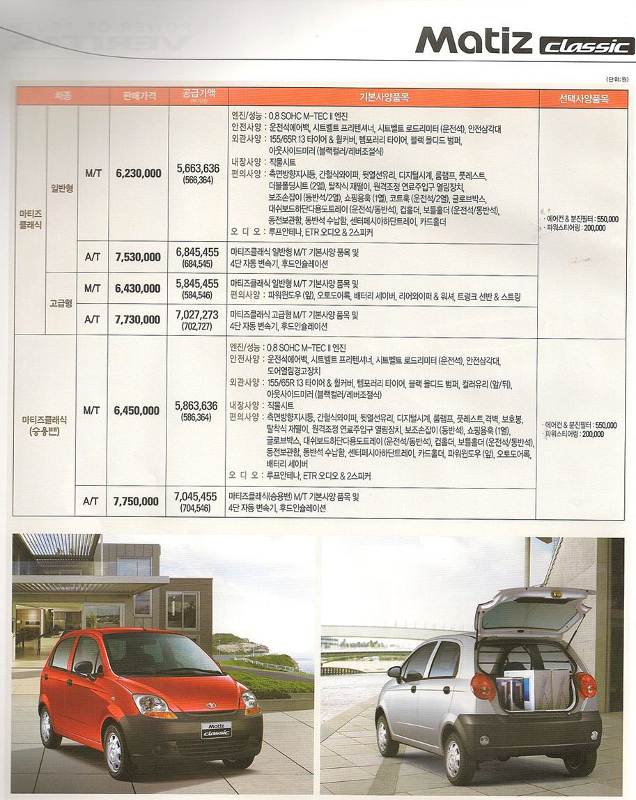 2010년 3월 마티즈 크리에이티브 신차가격표