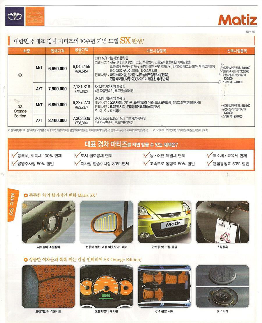 올뉴마티즈 SX 출시 . SX 오렌지에디션 출시.