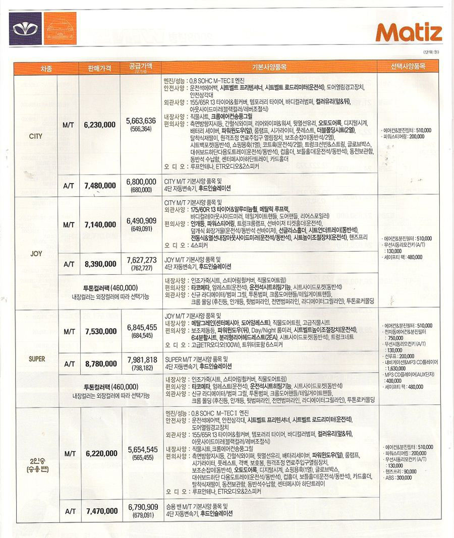 ※ 본 가격표의 모든 저작권은 해당 차량 제조사에 있습니다.
