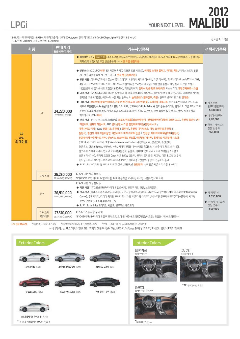 2012년 12월 말리부 신차가격표