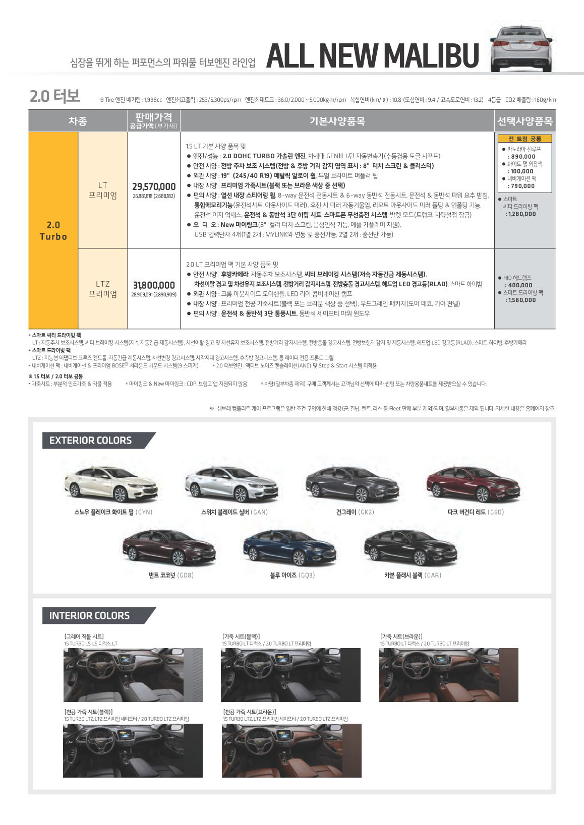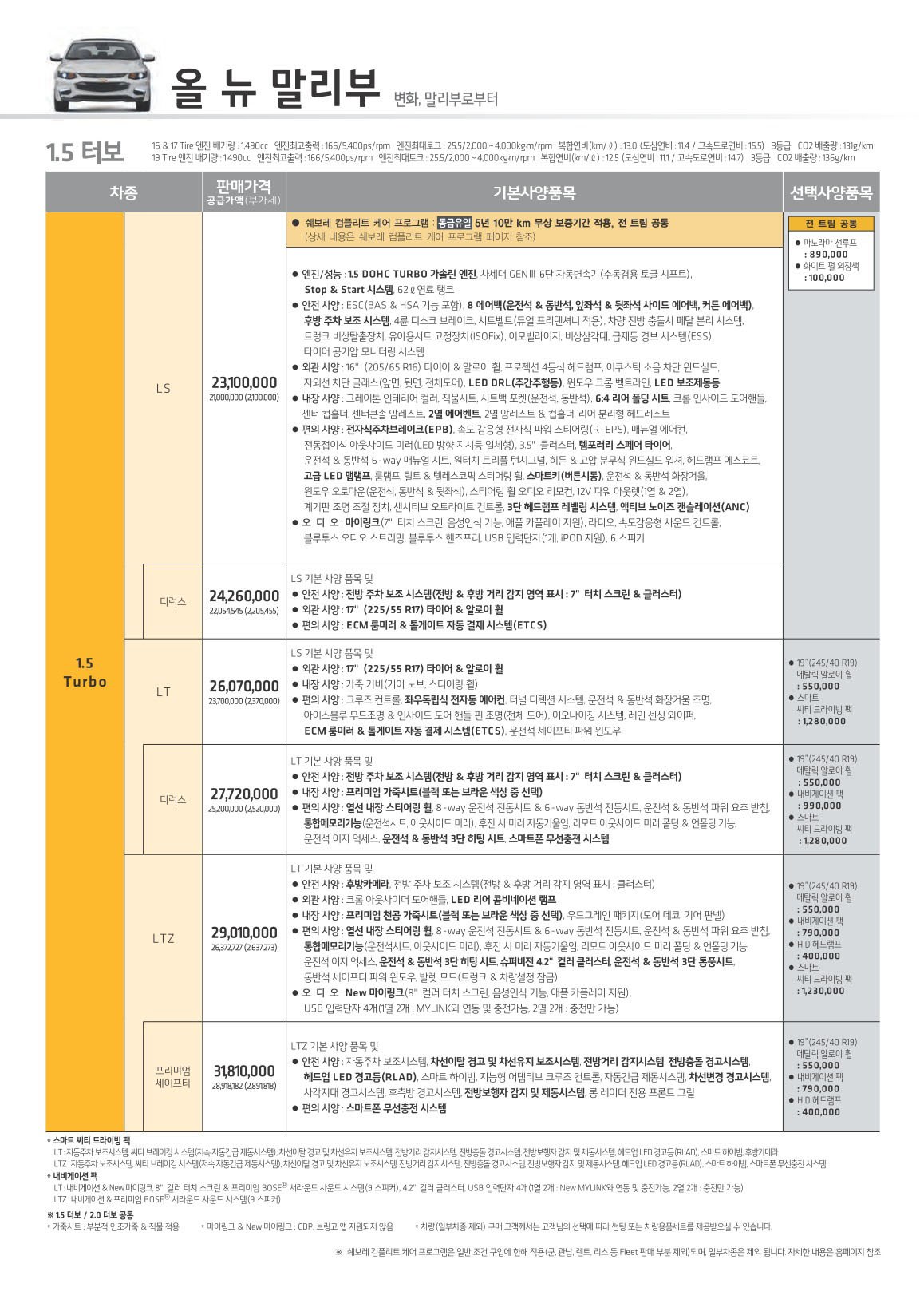 2016년 11월 올뉴 말리부 신차가격표