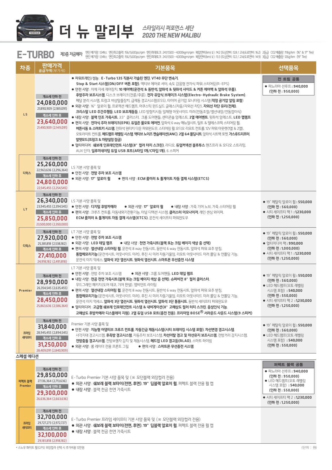 2020년 10월 말리부 신차가격표 (2021년형 말리부 출시)