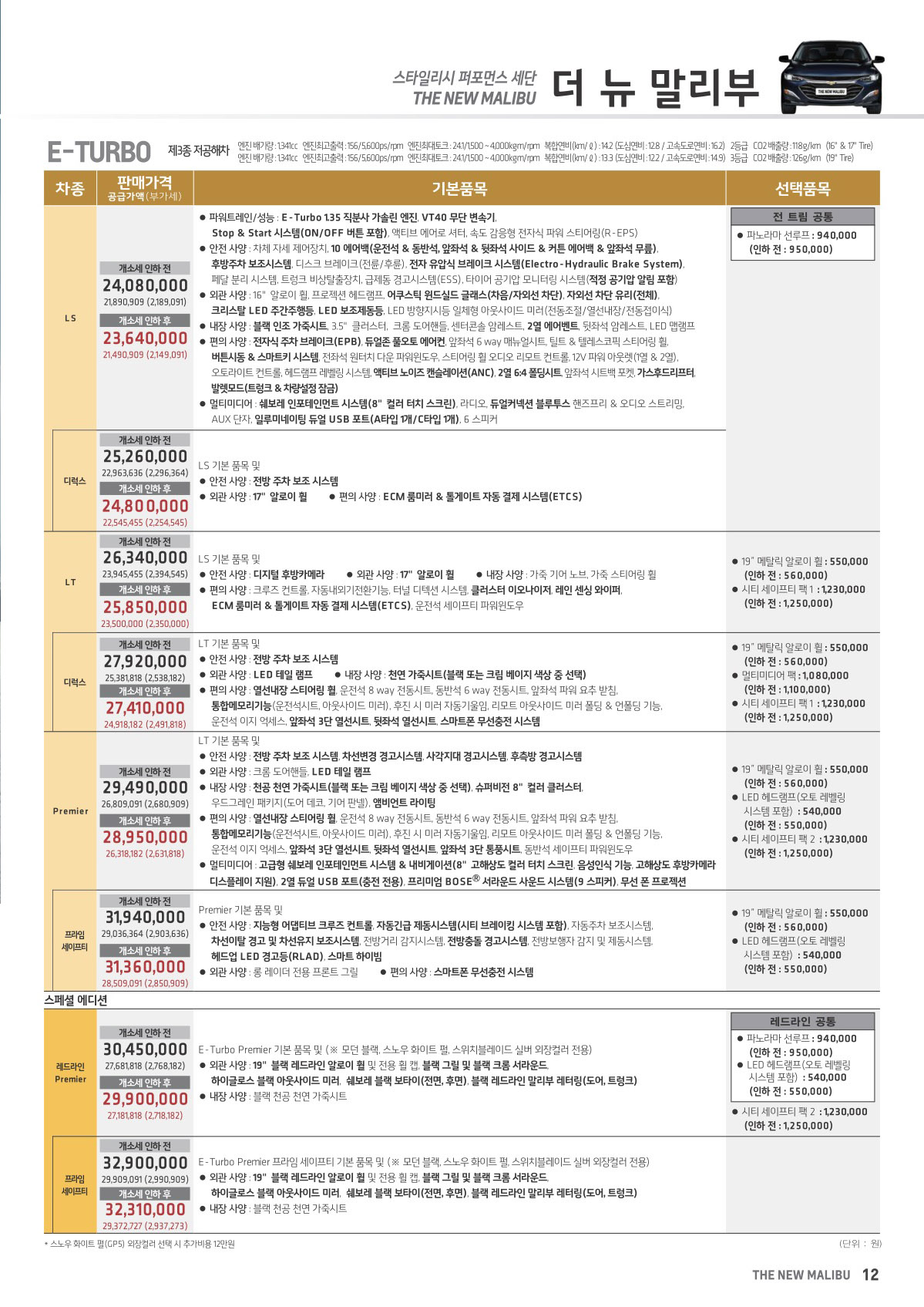 2020년 10월 말리부 신차가격표 (2021년형 말리부 출시)