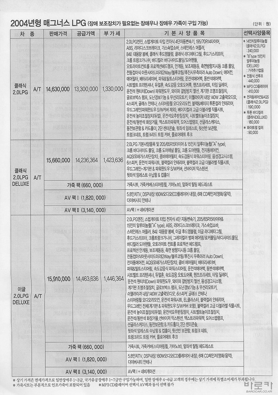 ※ 본 가격표의 모든 저작권은 해당 차량 제조사에 있습니다.