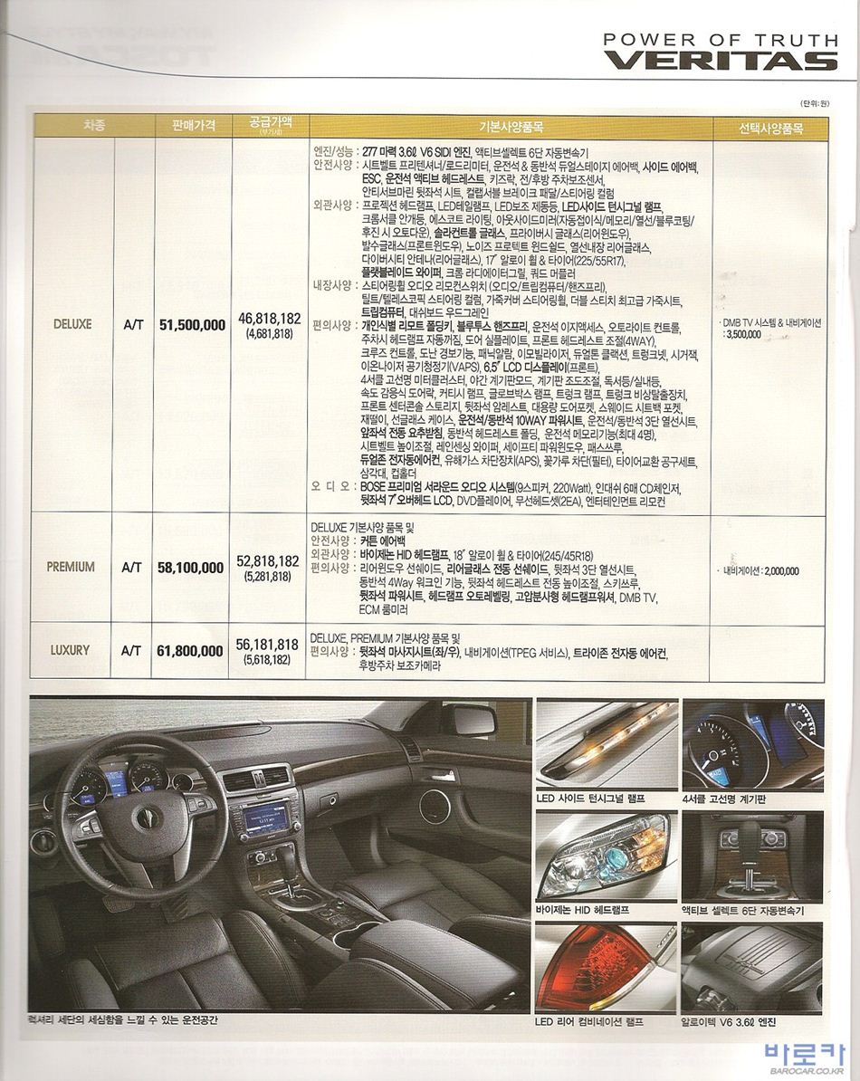 2010년 3월 베리타스 신차가격표