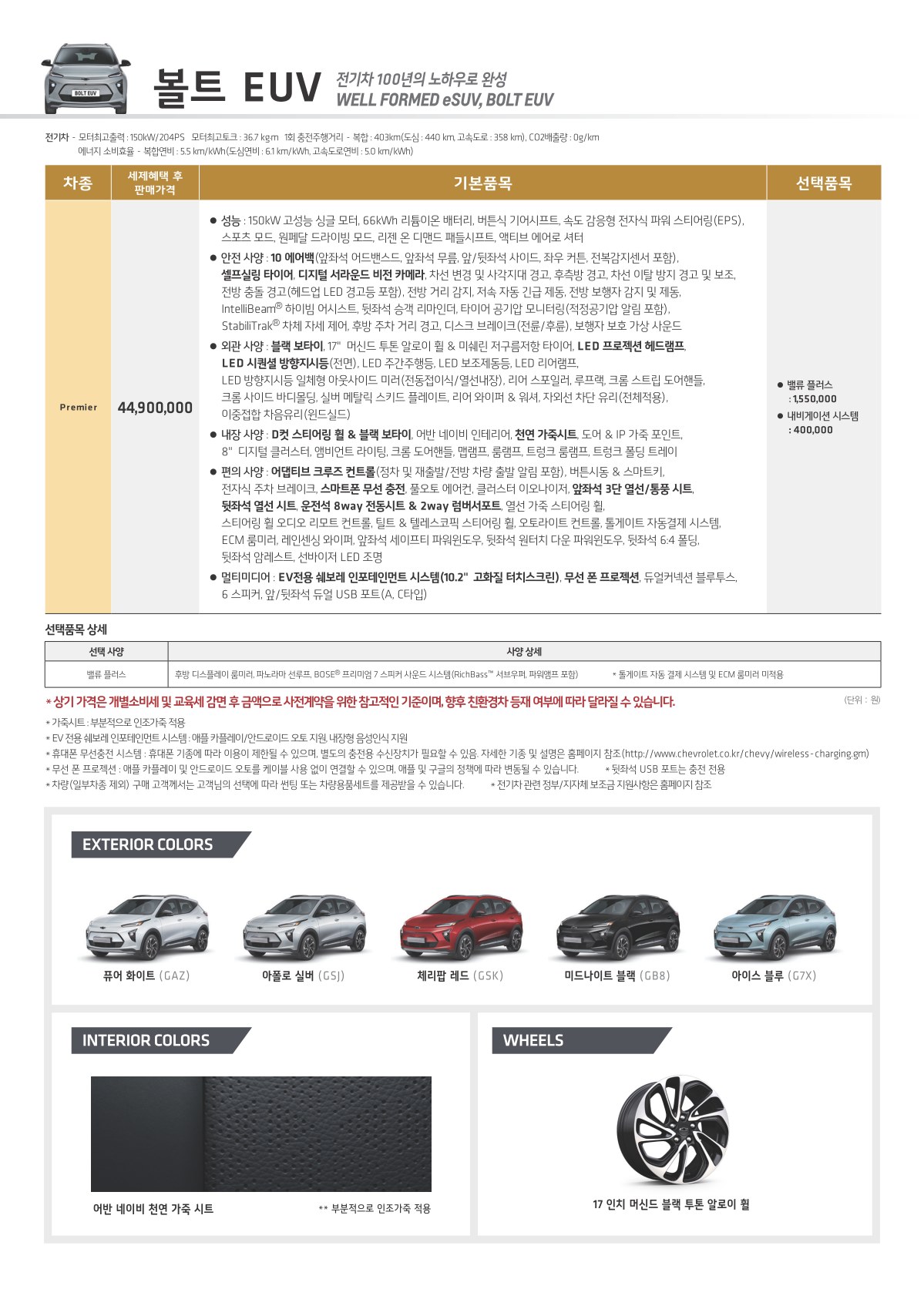2021년 8월 볼트EV & 볼트EUV 신차가격표 (신형 볼트 출시)