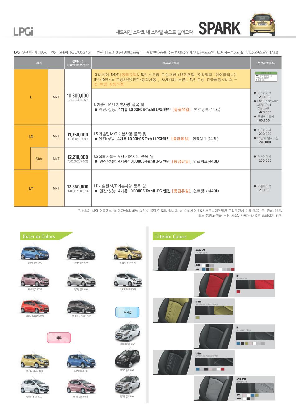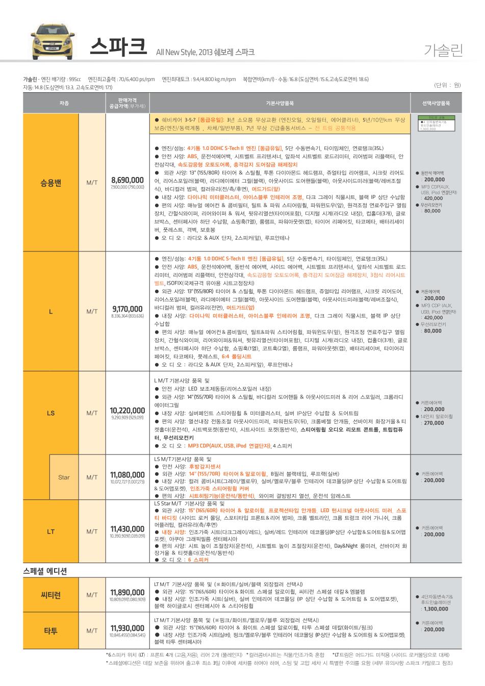 2013년 5월 스파크 신차가격표 (2014년형 스파크, 스파크S 출시)