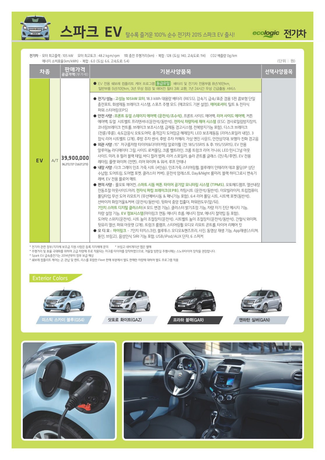 2015년 1월 스파크 신차가격표 / 스파크전기차EV 신차가격표